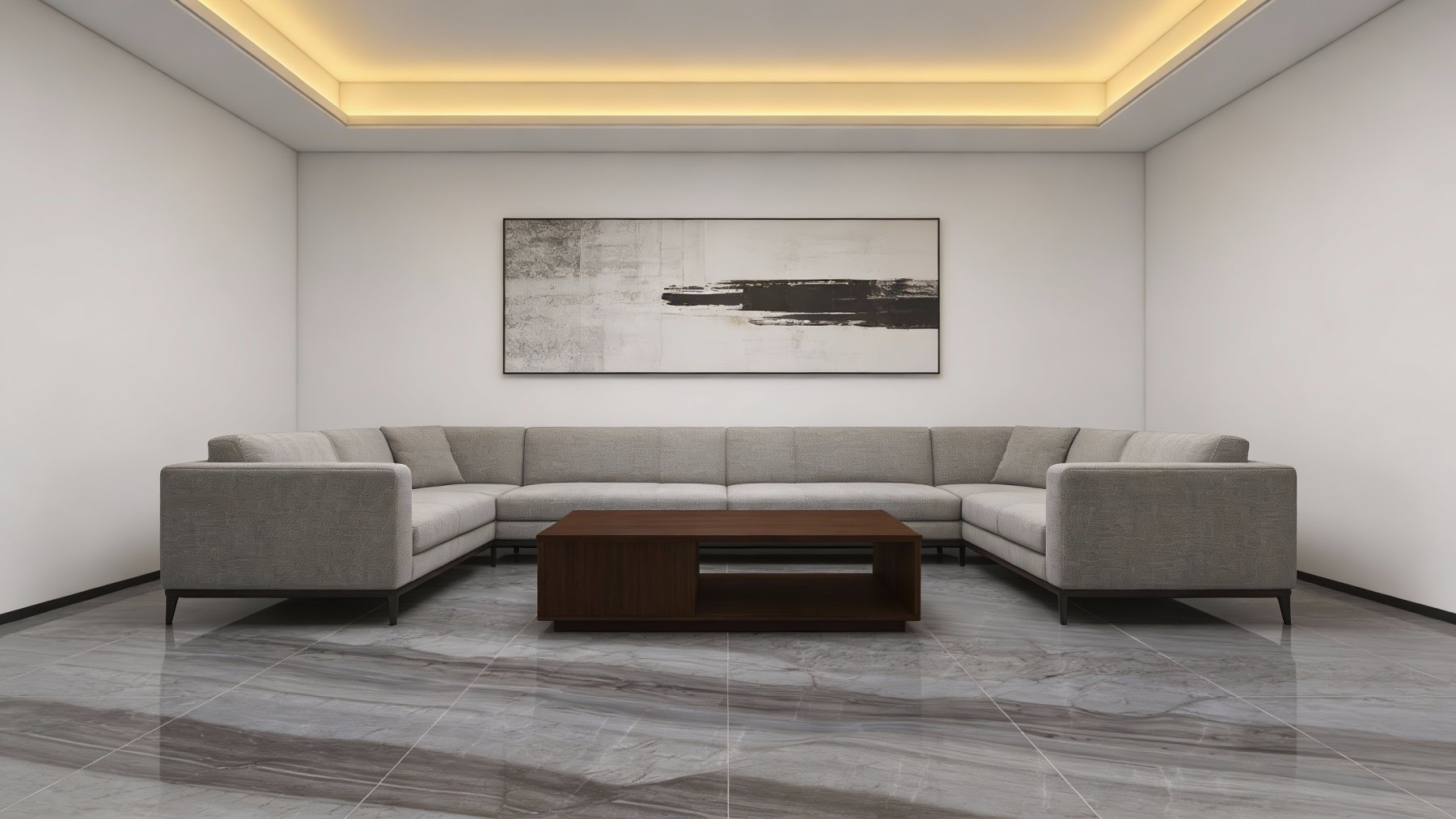### 底色基调 以**多阶灰色系**为核心基调,从浅灰的清透朦胧、中灰的沉稳内敛到深灰的厚重静谧自然过渡,整体色调中性偏冷,无杂色干扰,基底纯净且层次丰富,既保留了石材的天然质感,又传递出低调雅致的氛围。### 纹理形态 纹理呈现**自然层状与脉络交织**的复合形态:横向宽幅的带状纹理似地质沉积的痕迹,纵向、斜向的细碎线条如水流蜿蜒的印记,局部点缀着细密的裂纹肌理。纹理粗细变化有致——粗纹大气舒展,细纹精致灵动,疏密交织间形成动态的自然韵律,打破单调感,尽显天然石材的原生张力。### 细节质感 表面兼具**细腻温润与厚重肌理**:整体触感平滑却不失层次,细微处可见隐现的颗粒状结晶与浅淡的凹凸纹路,裂纹部分带有自然的肌理起伏,并非刻意雕琢的生硬感。光泽度偏向哑光或柔光,不张扬却能凸显材质的质感,既保留了石材的原始粗犷感,又通过细腻的处理传递出温润雅致的触觉与视觉体验。