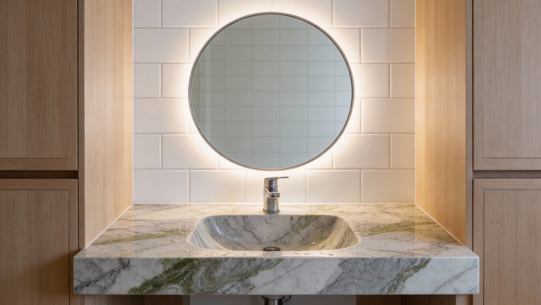 以浅灰白色为基底,基调清新淡雅,似晨雾般洁净通透,既保留了石材的自然质感,又传递出柔和静谧的视觉感受,为纹理的呈现提供了干净舒展的“画布”。