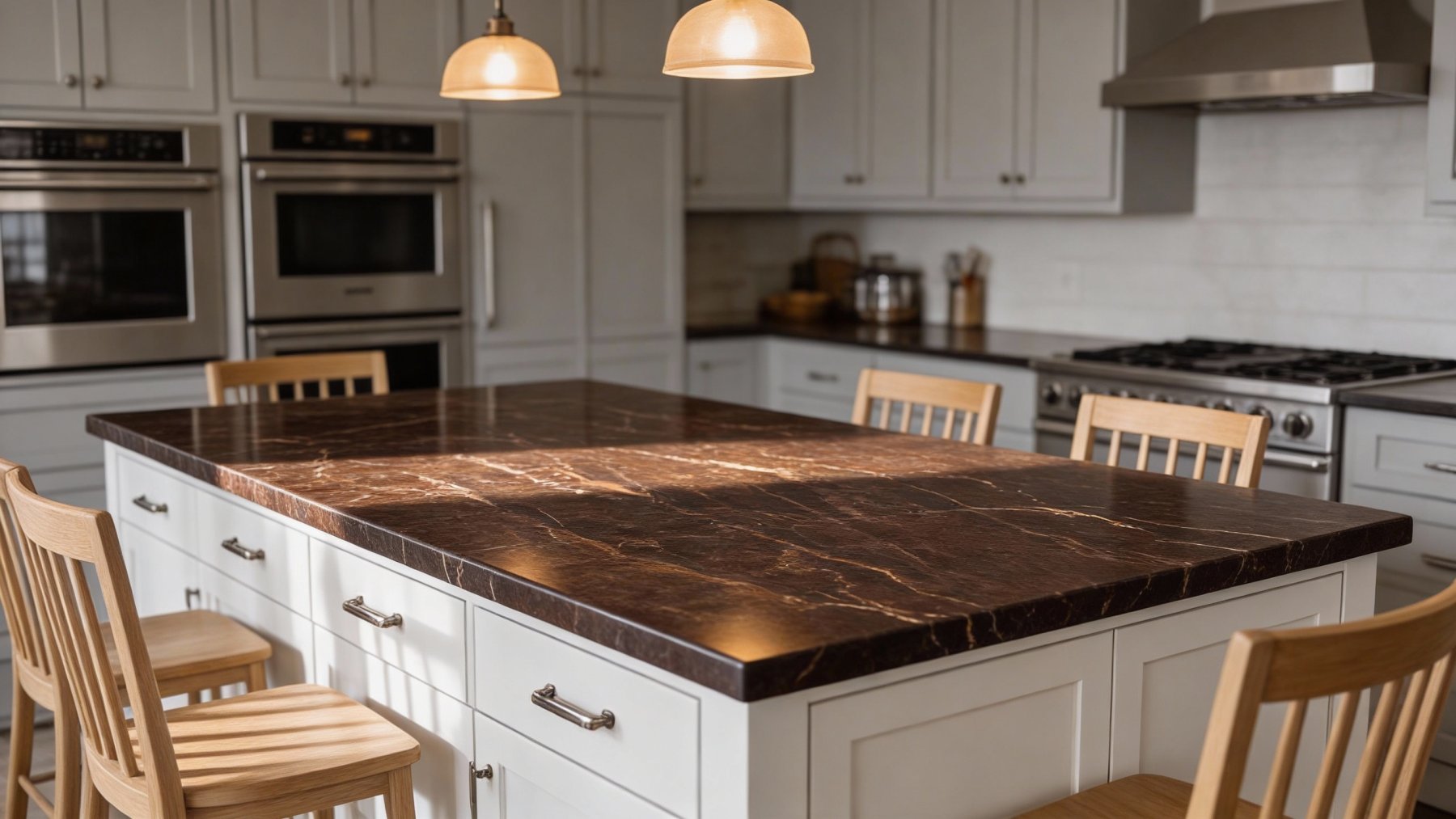 这款石材以**深邃暗棕**为核心基底,交织着浓郁的褐红与近黑的晕染色调,整体基调沉稳厚重,如被岁月沉淀的大地肌理般静谧坚实。复古的色泽中透着典雅气息,既不张扬也不沉闷,适配多种风格的空间氛围。
