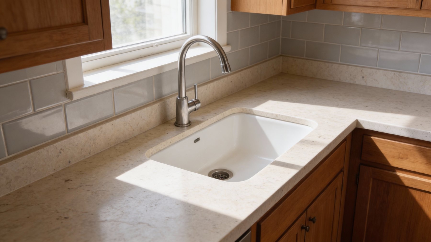 ### 底色基调 底色以柔和的浅米色为核心基调,整体色调均匀温润,呈自然质朴的中性质感——既无亮色的张扬,也无深色的沉闷,如同清晨阳光洒在沙砾上的柔和光晕,给人平和舒适的视觉感受。 ### 纹理形态 纹理形态极为细腻内敛,没有夸张的大花纹或尖锐的脉络走向,而是由分布均匀的细碎浅灰色斑点与隐约的自然肌理交织而成。纹理间过渡自然,如同天然石材经岁月沉淀后留下的微妙痕迹,低调却暗藏层次,让整体视觉不单调却又不杂乱。 ### 细节质感 表面呈现细腻温润的哑光质感,触感应是平滑细腻且带有轻微的自然肌理感——无强烈反光,反而透着内敛的高级感;既保留了天然石材的质朴厚重感,又兼具柔和亲肤的舒适体验,仿佛能触摸到自然石材沉淀的岁月温度。