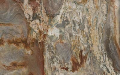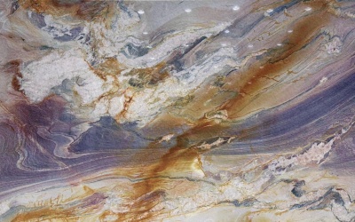 纹理呈现**自然流动的层叠脉络**,似云雾缭绕的山峦、又若江河奔涌的波纹:不规则的飘逸条纹与斑块状肌理相互交织,深浅色块过渡自然,形成富有动感的视觉层次。部分区域纹理如舒展的丝绸般顺滑,部分则似沉淀的地质层理,无明显重复规律,充满天然的随机性与艺术张力,仿佛记录了地质演变的时光轨迹。