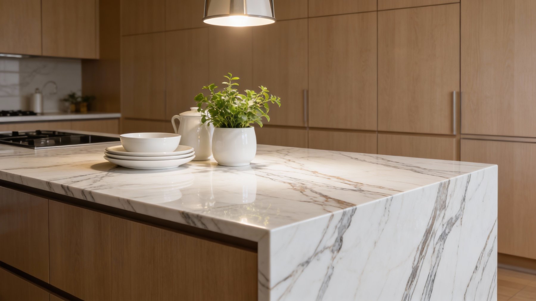 ### 底色基调 这款石材的底色基调为**纯净温润的乳白色**,质感细腻柔和如凝脂,清透中带着自然的柔和光泽,既不刺眼也不失通透感,为纹理提供了干净雅致的背景,整体基调简约大气,自带高级感。### 纹理形态 纹理呈现**双色线性流动交织**的形态:浅棕金色与深灰黑色的纹路以平行或斜向的方向延展,如同山间溪流般灵动飘逸。纹路粗细错落,有的纤细如丝、轻盈舒展,有的稍显宽润、沉稳有力,彼此交错却不杂乱,形成富有韵律的视觉层次,仿佛天然造化的艺术笔触,兼具动态灵动感与秩序美感。### 细节质感 石材表面**光滑莹润**,触感应冰凉顺滑,带有天然石材特有的细腻光泽(类似抛光后的温润亮泽)。纹理边缘过渡自然柔和,无生硬切割痕迹,每一条纹路的深浅变化都彰显天然唯一性;部分区域的纹路中隐约可见细微肌理,增添了质感层次。整体既保留了石材的坚硬质感,又因清透底色与灵动纹理,显得精致而富有生命力。