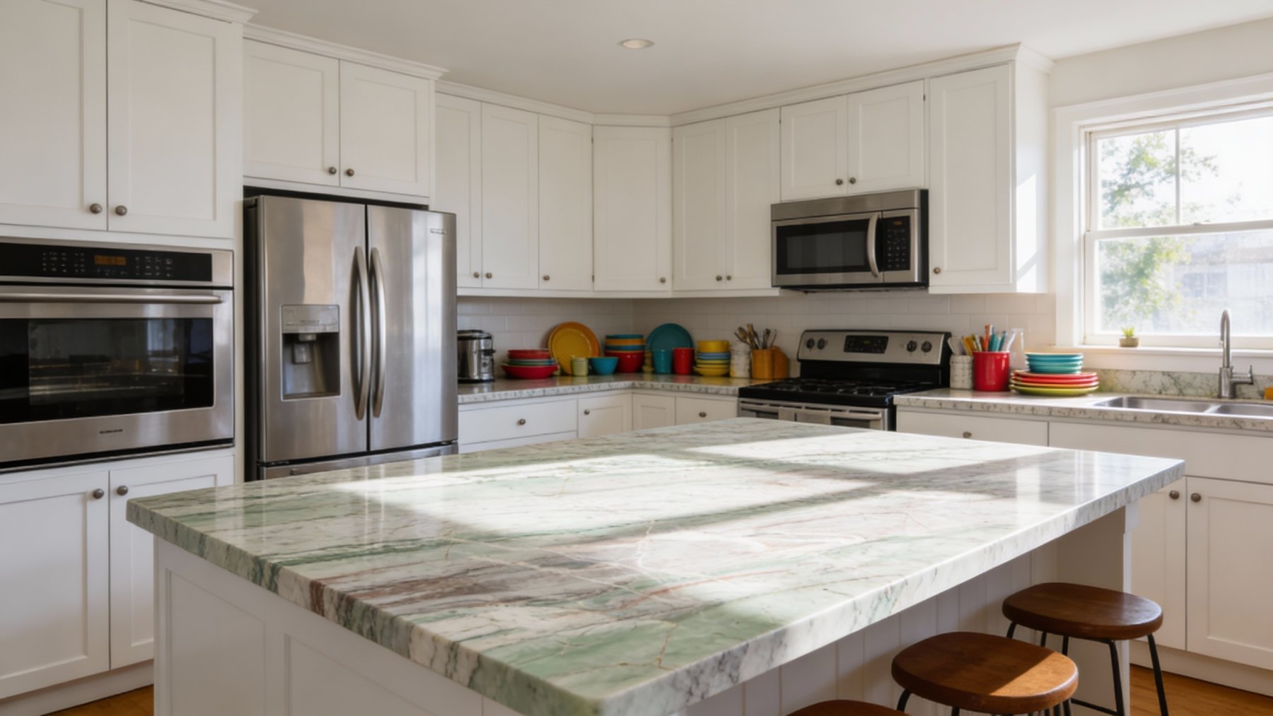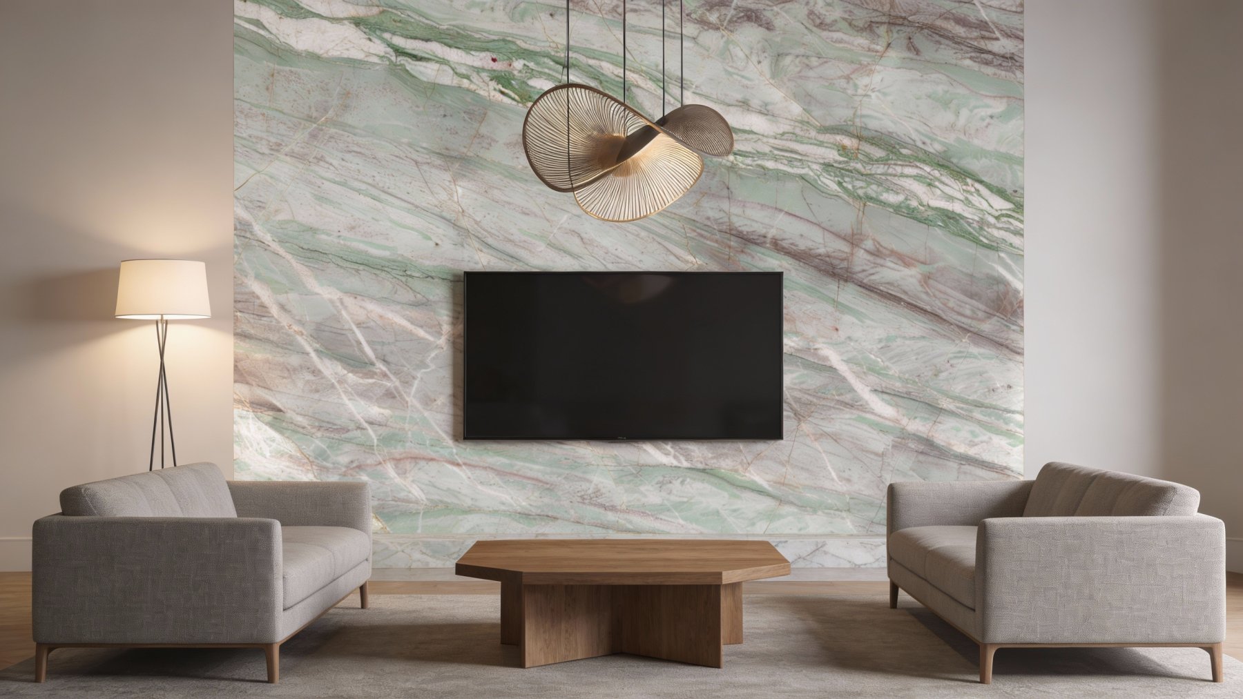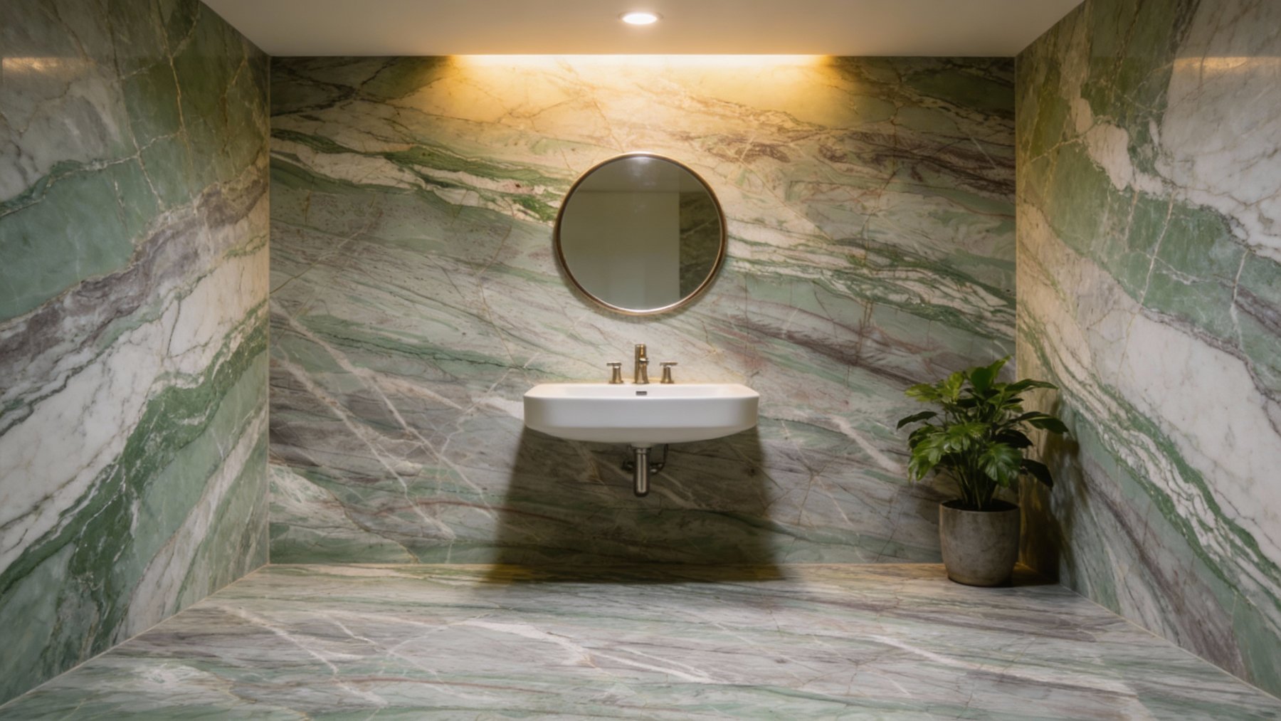 表面质感**细腻温润**,带有柔和的天然光泽,触感应平滑细腻;颜色过渡处晕染自然,无生硬边界;细微处可见天然石材特有的肌理层次,如淡绿与灰白衔接处的渐变、浅褐线条的若隐若现,既保留了石材的天然质感,又兼具雅致高级的视觉效果,整体呈现出厚重却不笨重的温润质感。