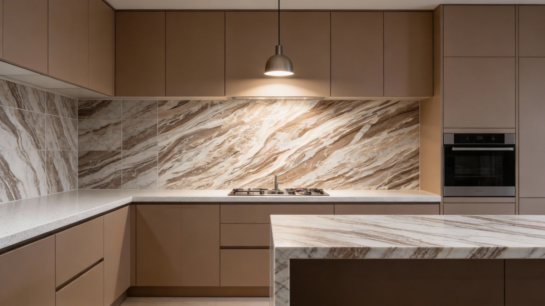 整体而言,这款石材将自然流动的韵律与暖调大地色的沉稳完美融合,无论是视觉还是质感都传递出自然雅致的氛围。