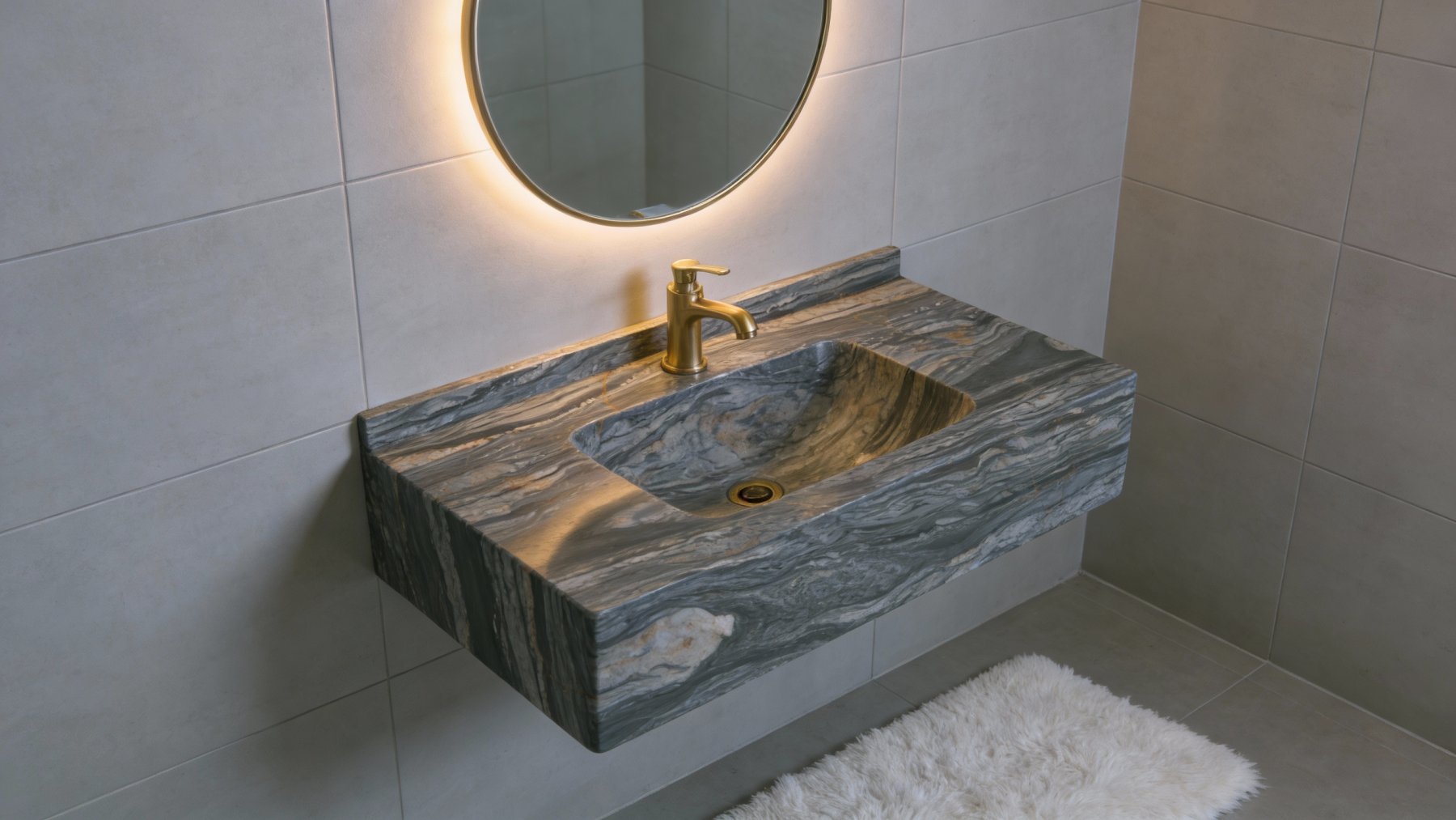 石材底色以**深邃的墨灰色**为核心基调,交织着浅灰、银灰与米白色调,整体呈现出沉稳内敛的冷冽质感。深灰与浅灰的过渡自然交融,如同暮色下的深海与云层,既保留了石材的厚重感,又因浅色调的点缀避免了沉闷,营造出层次丰富的视觉基底。