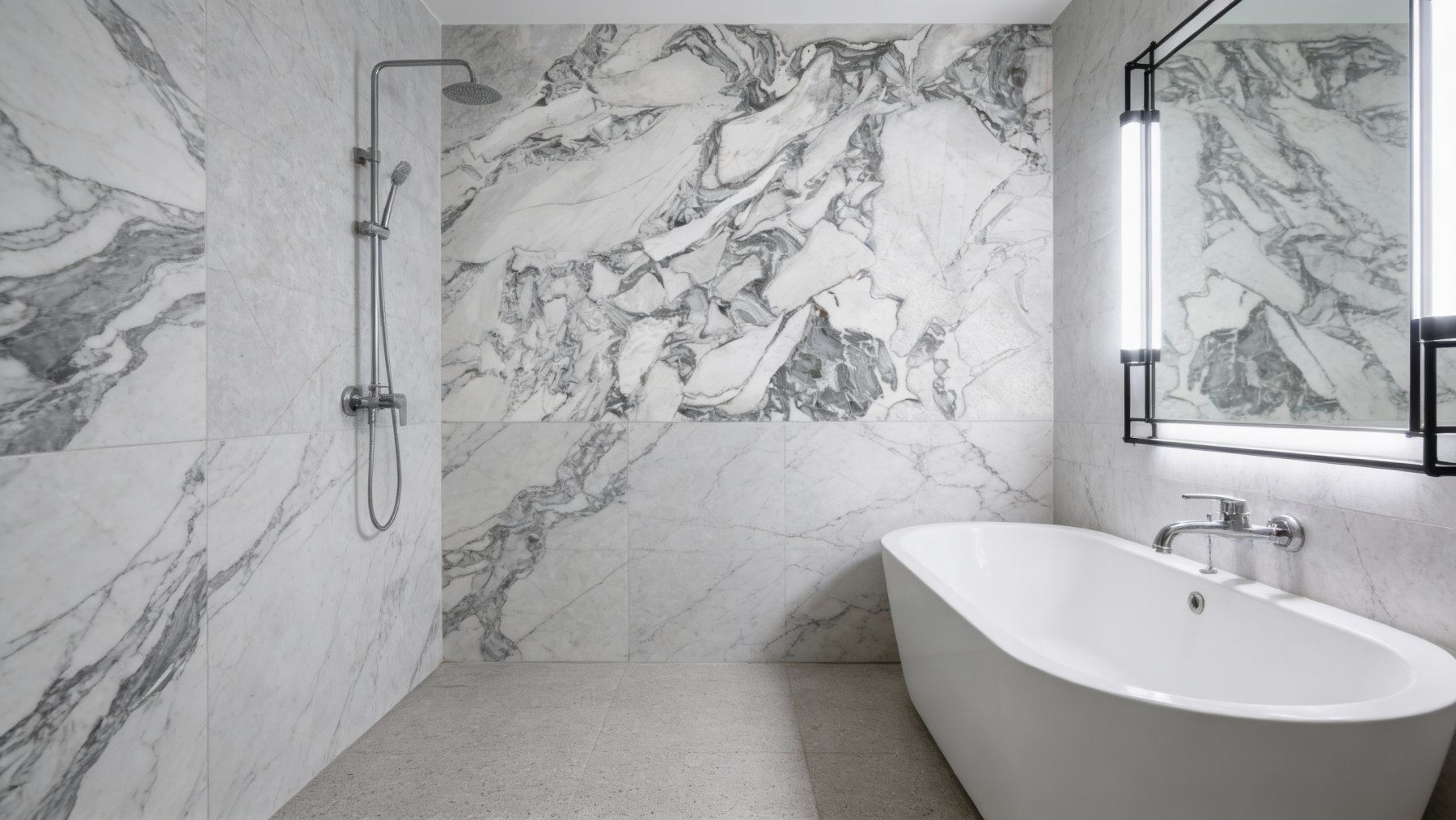 石材底色以**纯净温润的象牙白与浅灰白为主调**,色调明亮清透却不失柔和感——亮白区域如素宣般洁净,浅灰区域则似晨雾般朦胧,两者自然过渡,无生硬割裂,整体奠定了优雅、洁净且富有呼吸感的视觉基底。