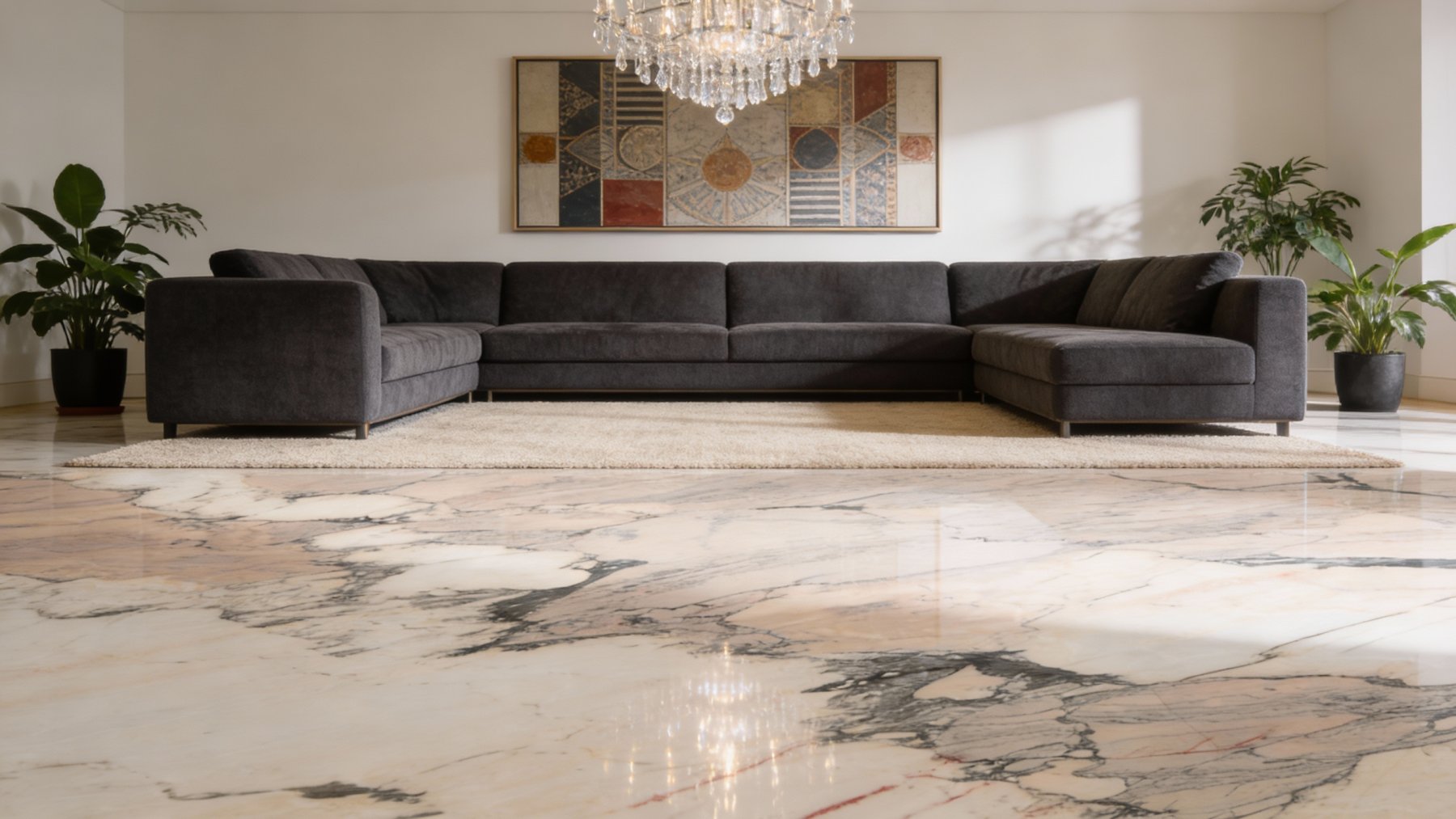 这款石材的底色以柔和暖调为主,融合了米白、淡粉与浅米色的自然渐变,整体呈现出温润雅致的浅暖色系。没有强烈的色彩冲突,如同清晨的柔光般舒缓,给人一种舒适、静谧的视觉感受,既保留了天然石材的质朴感,又兼具优雅的气质。
