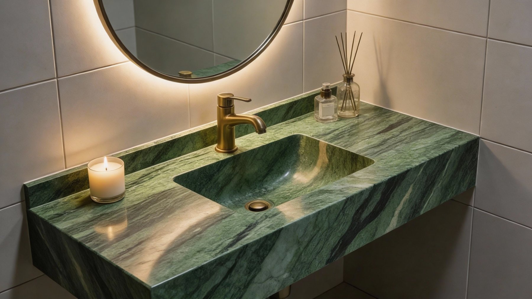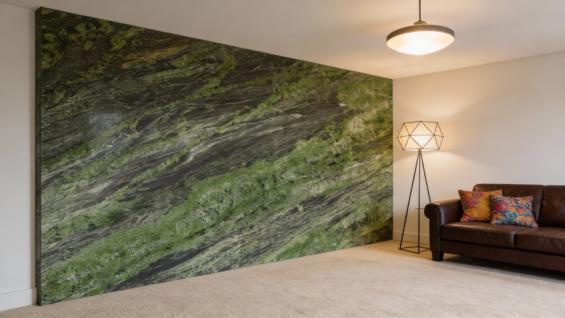 这款石材以深邃的墨黑色为基底,交织着浓郁且层次丰富的墨绿色调,整体呈现出沉稳厚重与自然生机兼具的质感。墨黑的深邃赋予石材内敛的底蕴,而深浅不一的墨绿色(从苍绿到翠绿的过渡)则为其注入灵动气息,二者融合如天然植被覆于岩石之上,既有地质的沧桑感,又不失鲜活张力。