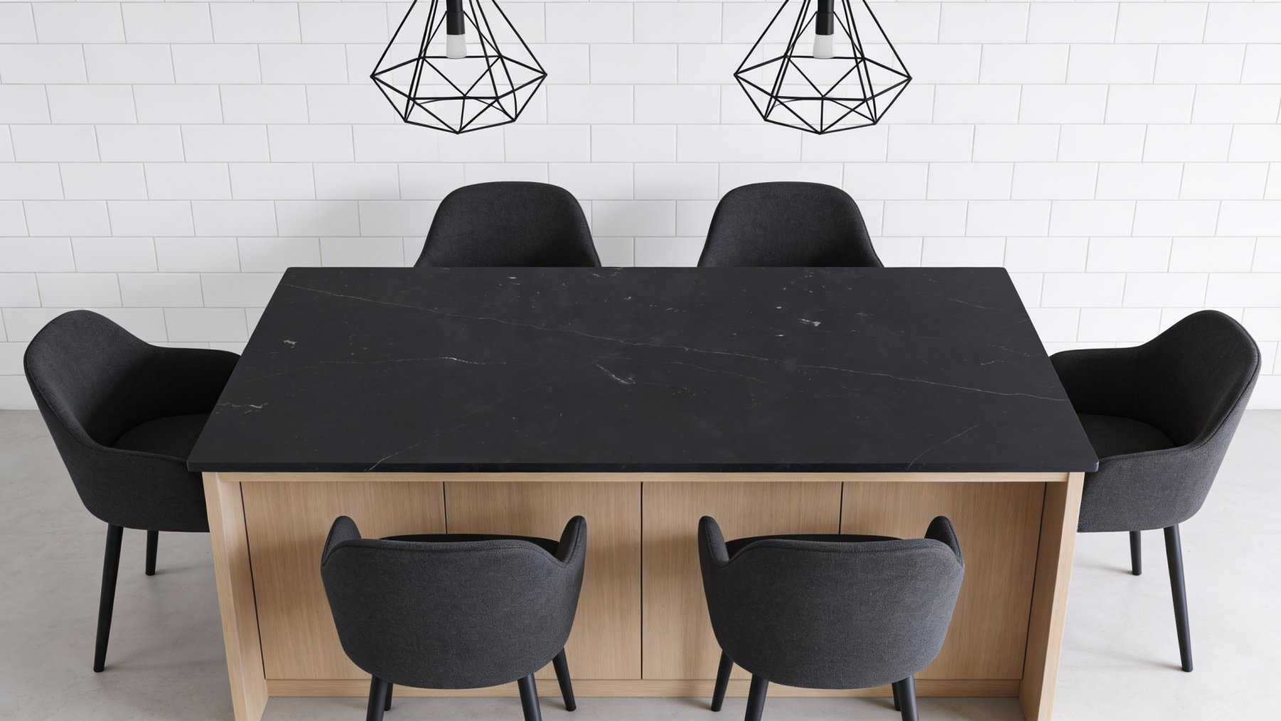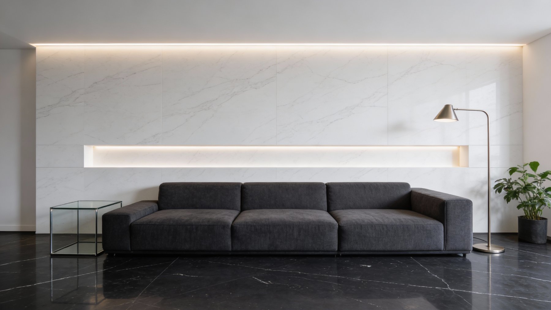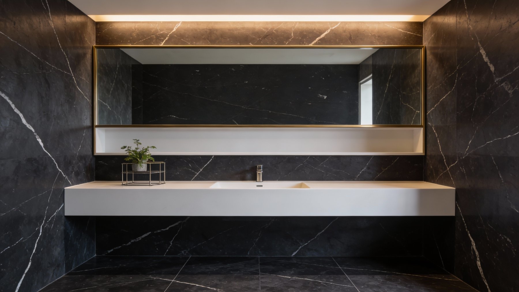 ### 底色基调 石材底色以**浓郁深邃的纯黑**为核心基调,色泽饱满厚重,如墨夜般静谧纯粹。整体色调均匀统一,仅在极细微处隐约透出浅淡的色泽过渡,既维持了黑调的完整性,又避免了单调感,奠定了沉稳高级的视觉基底。### 纹理形态 纹理呈现为**自然随性的白色脉络**,线条纤细且蜿蜒交错,似山间溪流般无规则蔓延。部分线条稍显粗重,与纤细纹路相互交织,形成富有动感的视觉层次——既非规整的几何图案,也非密集的碎纹,而是疏密有致的“流动感纹理”,为沉闷的黑底注入了灵动气息。### 细节质感 表面经抛光处理后,呈现出**细腻温润的光滑质感**,触感应如凝脂般顺滑,带有柔和内敛的光泽(非刺眼高光)。白色纹理部分质地通透,与黑色基底形成鲜明对比:黑底的哑光厚重感与白纹的亮泽通透感相互映衬,既保留了石材的坚硬质感,又透出自然石材独有的雅致灵动,整体质感高级且富有层次感。