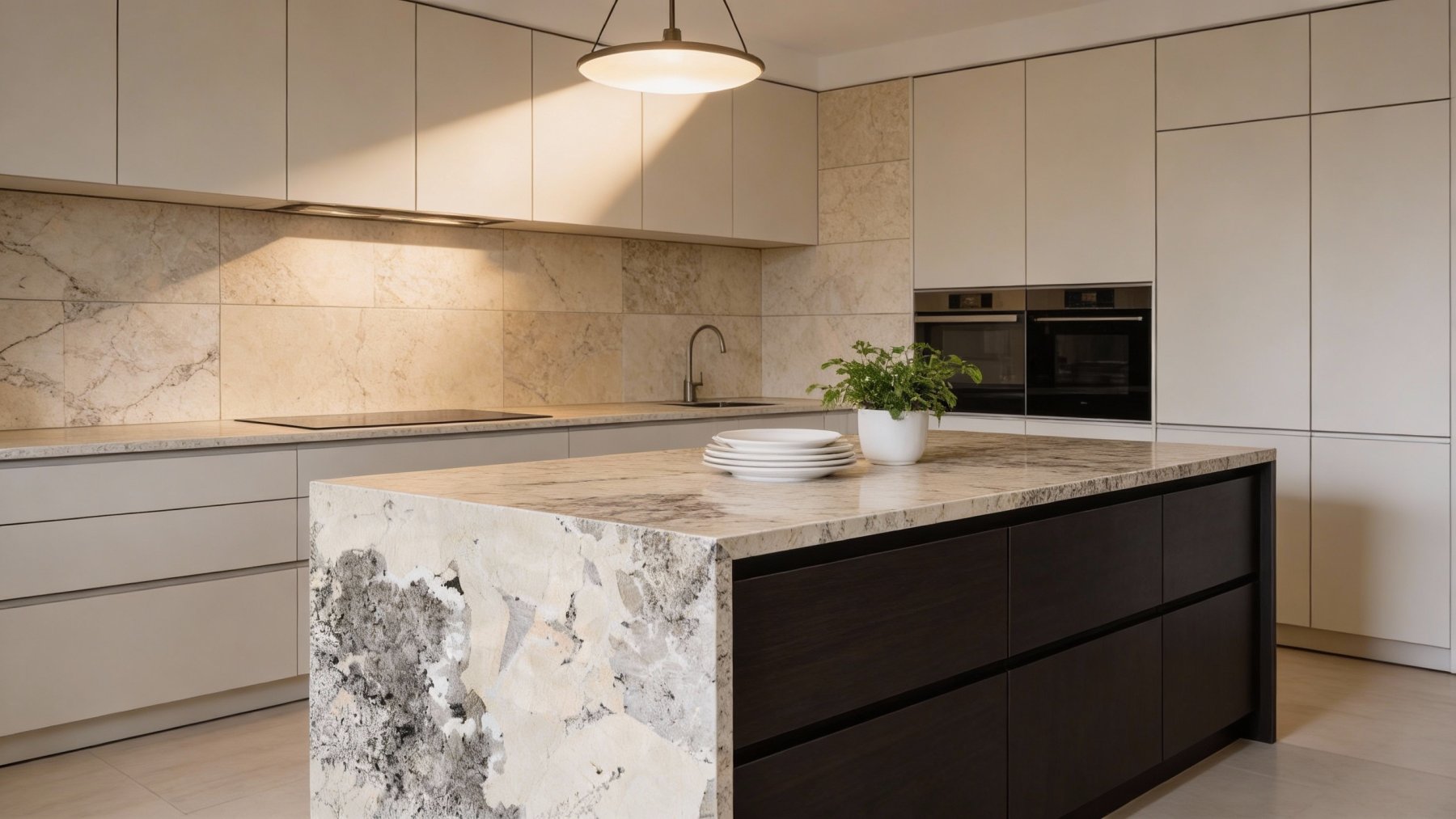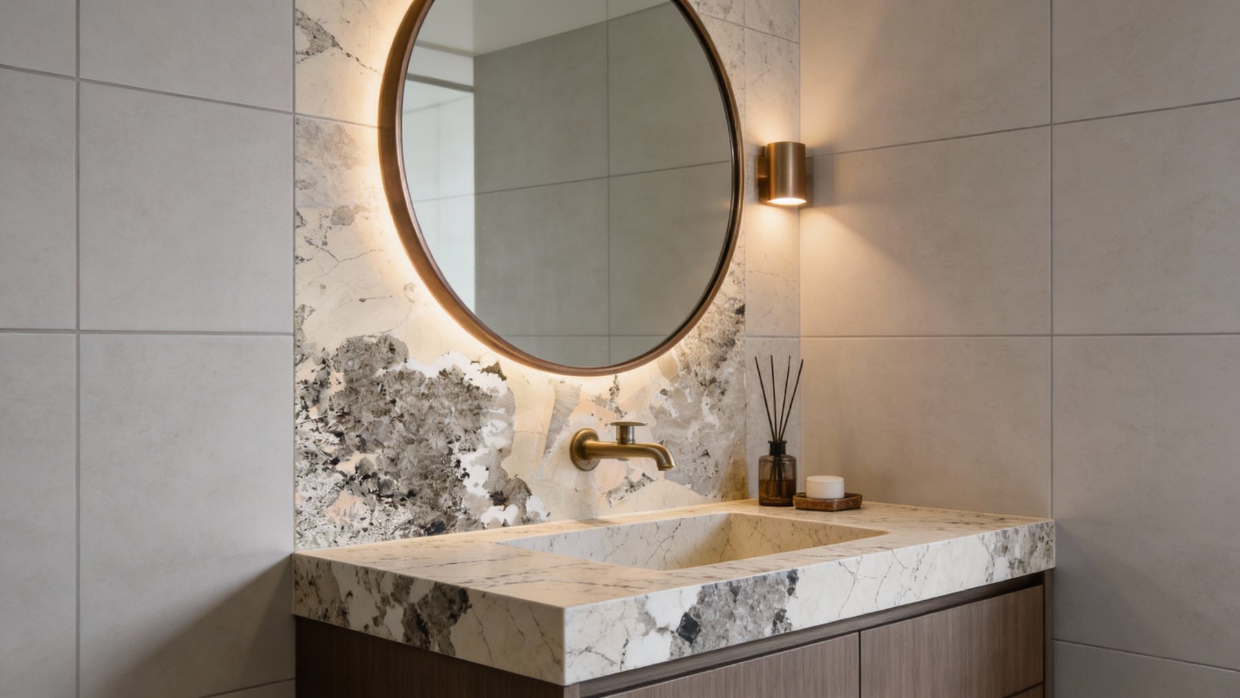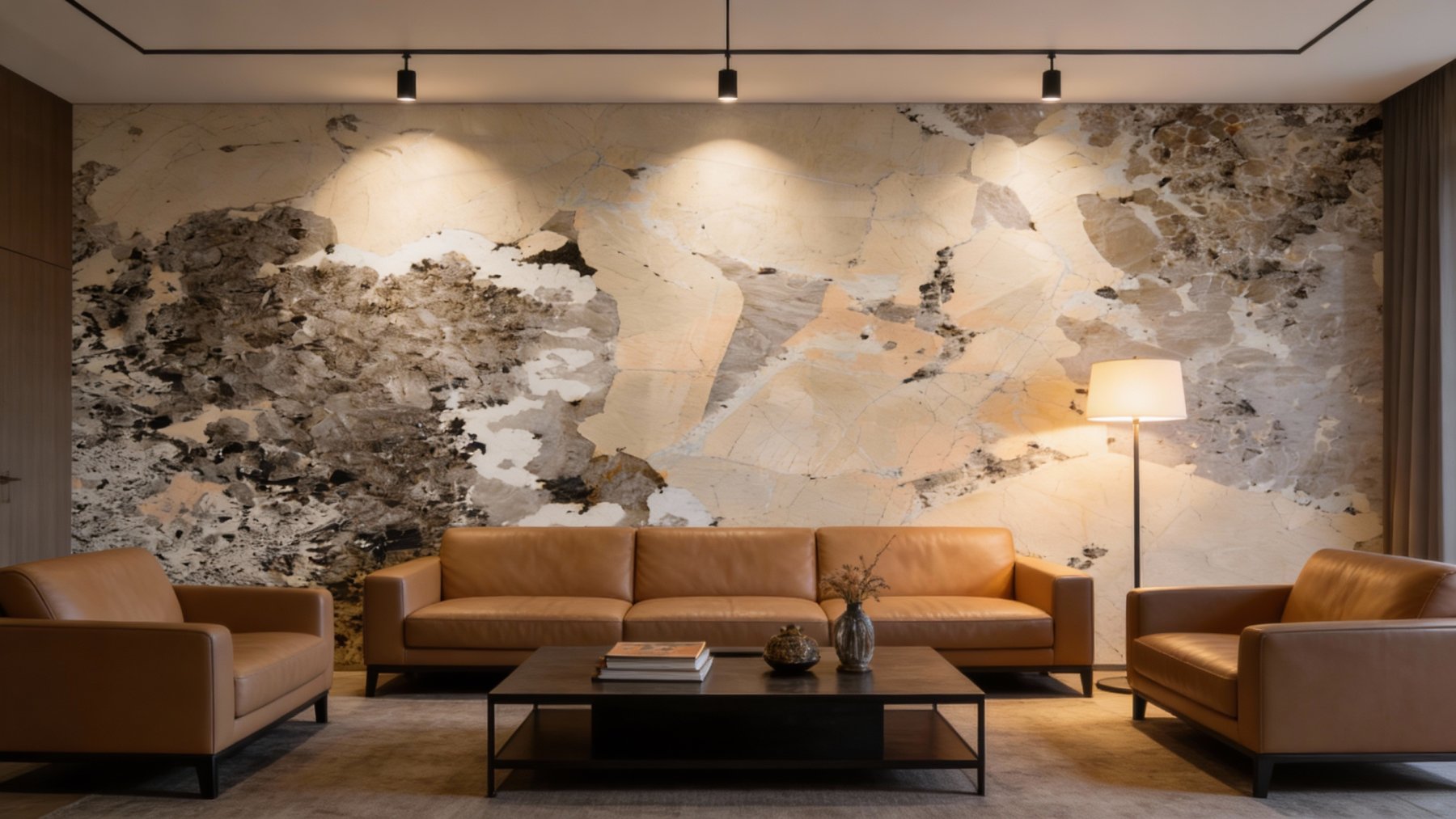 以**暖调浅米色**为核心基底,色泽柔和温润,局部略带淡粉或浅灰的微妙色彩过渡,整体氛围雅致不张扬,既保留了天然石材的质朴感,又因暖调基底增添了一丝温馨柔和的气质。