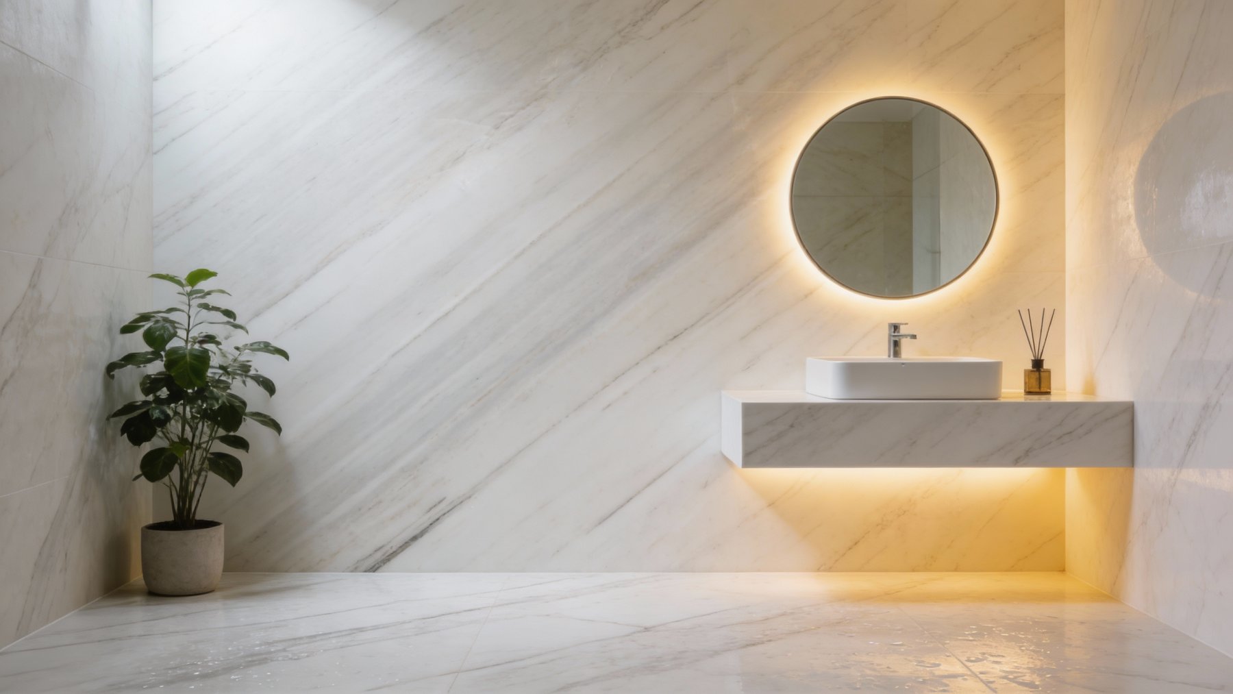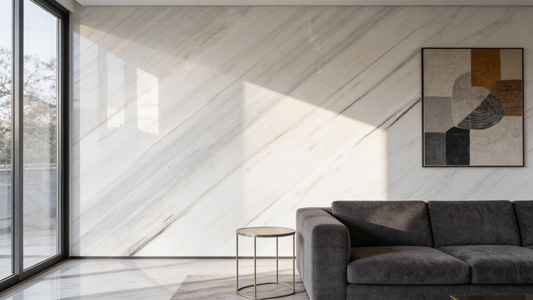 表面质感温润细腻,触感应是平滑光洁的,带有石材特有的内敛柔光,不刺眼却自带高级感;纹理边缘过渡自然,无生硬断裂,细微处可见肌理内部的微妙起伏,似天然形成的脉络般浑然天成,既保留了石材的自然质感,又通过精细的打磨处理,呈现出精致细腻的工艺感,尽显优雅与质感并存的特质。