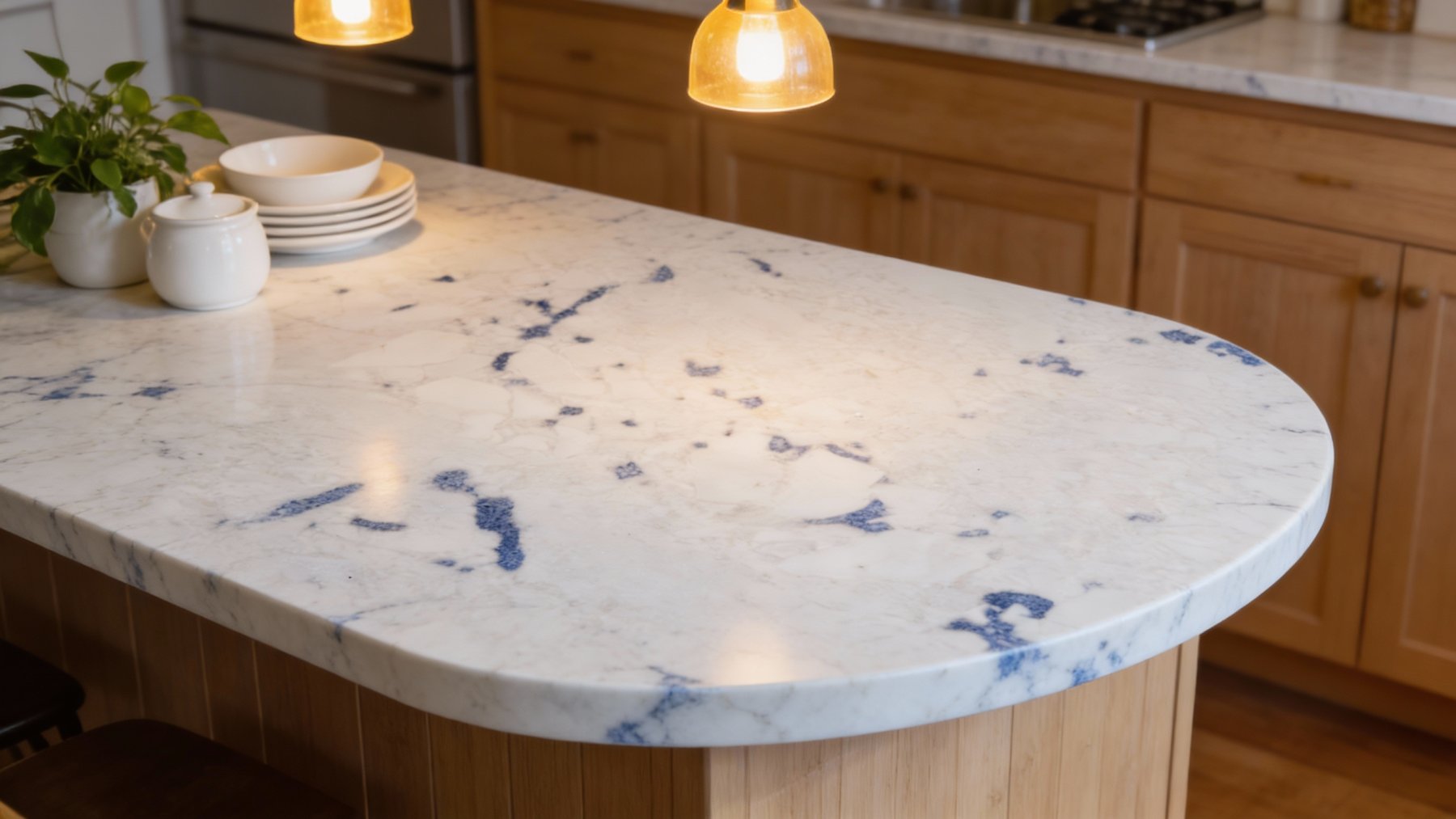 材质:从质感和纹理均匀度看,更可能是石英石(而非天然大理石)—— 这类材质硬度高、防污性强,更适合家用场景。