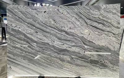 纹理特征:板面分布着灵动的波浪状流动纹,以中灰、深灰为主色调的纹理呈曲线交织,如同云雾翻涌或水流波纹,线条舒展且富有动态感,打破了底色的单调感;