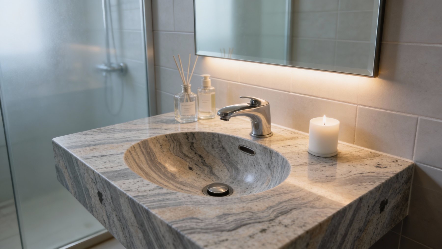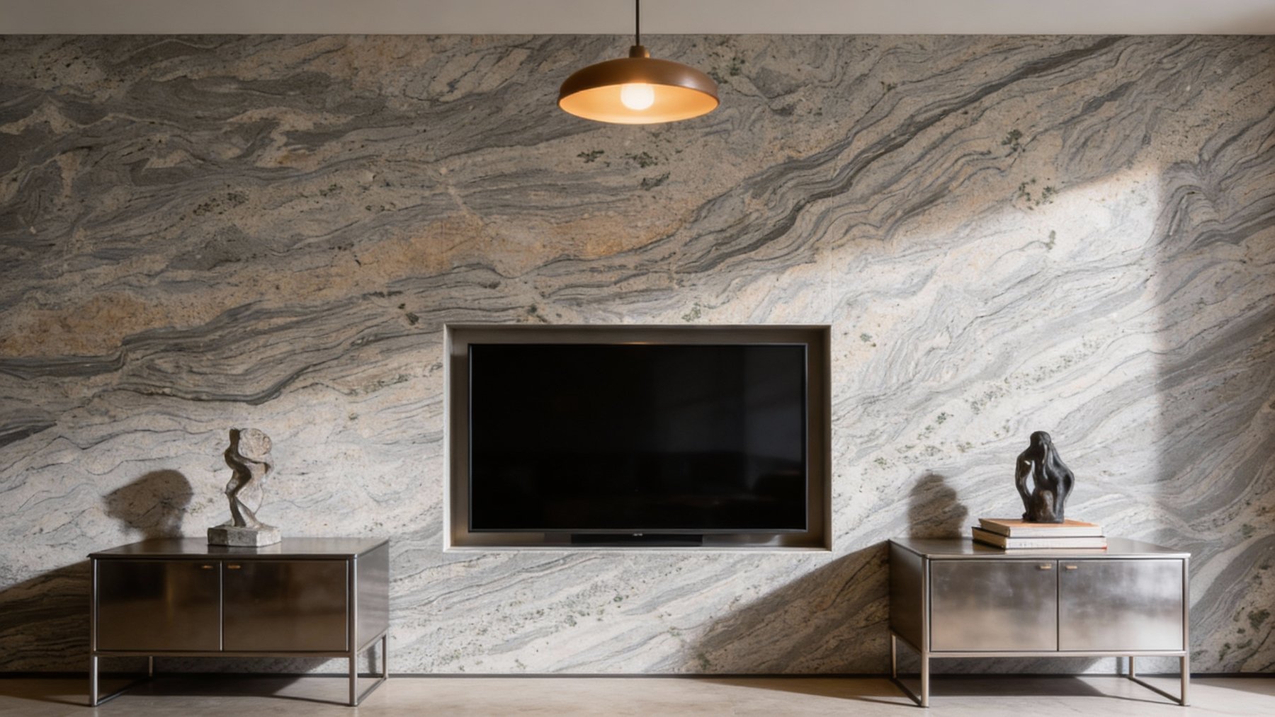 细节质感:纹理间夹杂着细碎的深色矿物斑点,让层次更丰富,同时保留了天然石材的颗粒质感,既显自然随性,又因流动纹的韵律感透出艺术氛围。