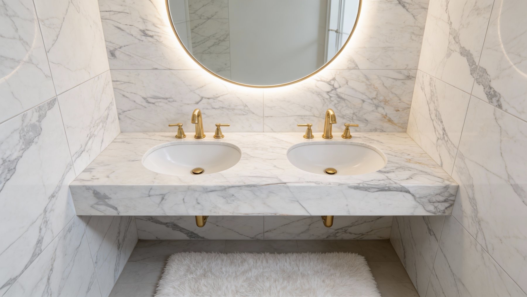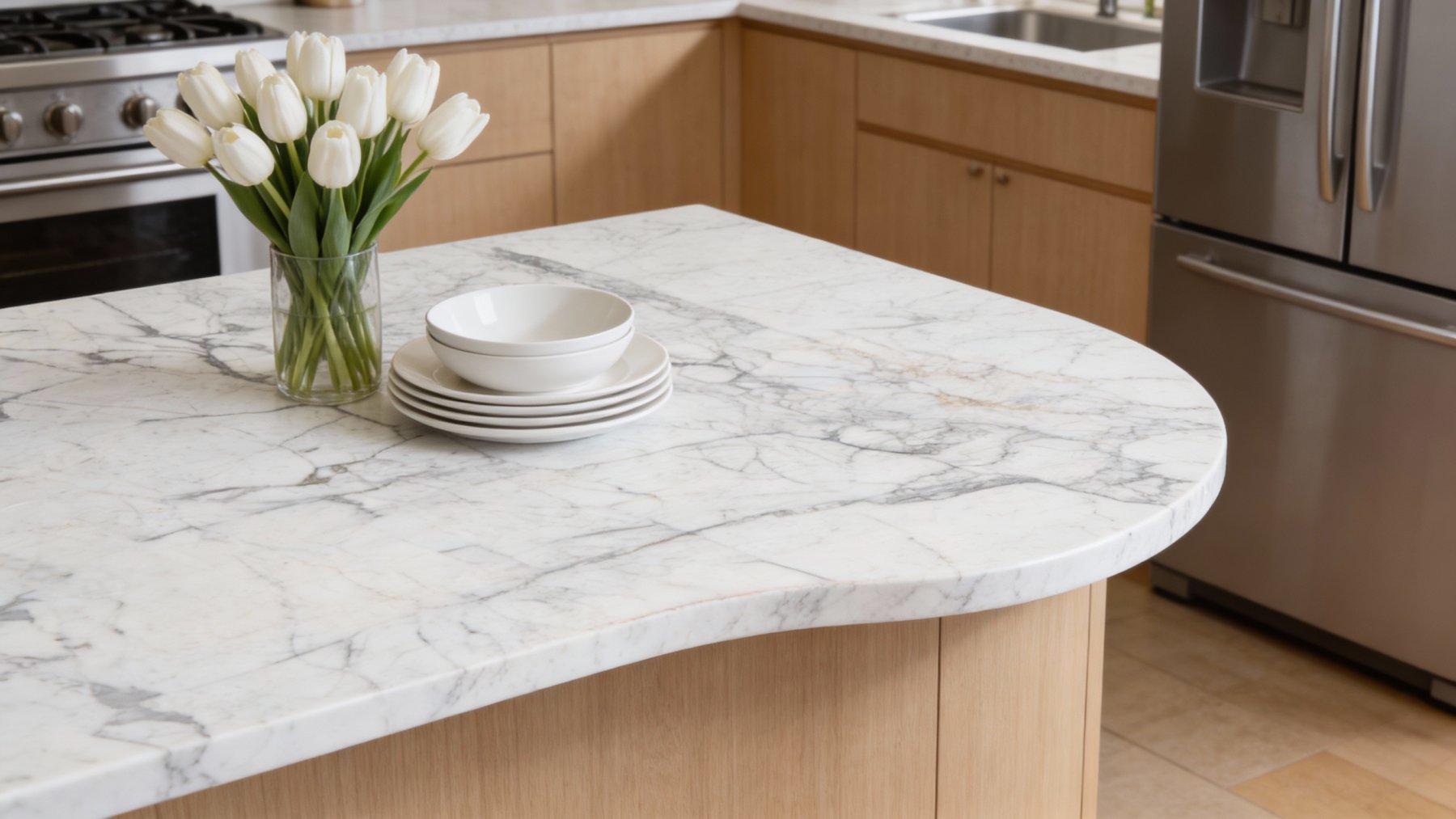 以**温润柔和的乳白色**为核心基底,间杂极淡的灰白调,整体纯净通透却不生硬刺眼,宛如清晨薄雾般雅致清新。基底中无杂乱杂色干扰,仅在细微处透出天然石材的原生质感,奠定了简约高级、自带柔光的视觉基调。