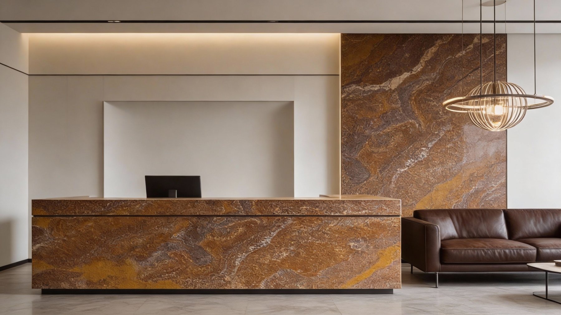 以暖棕色调为核心基底,融合赭石橙、暗红褐等层次化暖色系色彩,整体呈现深沉而温润的复古暖感。底色并非单一纯色,而是由深浅不一的暖色块自然晕染过渡,如暗褐的深邃与橙黄的明亮交织,既保留了天然石材的厚重感,又通过暖色调的层次变化避免了沉闷,奠定了温暖质朴的视觉基调。