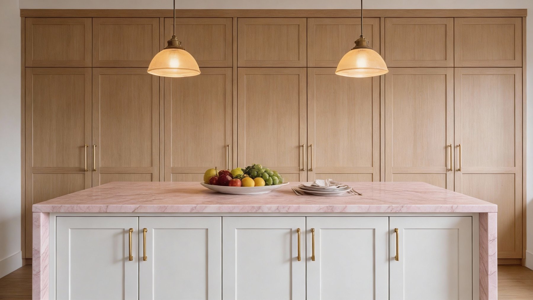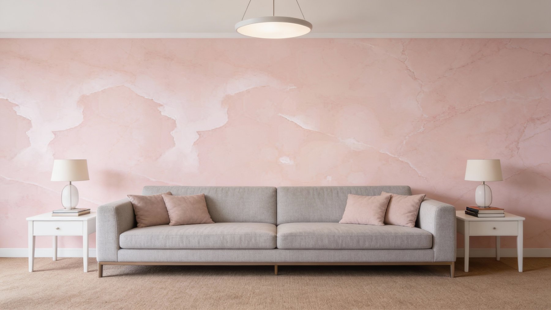 这款石材的底色基调为柔和的浅杏粉色,糅合了淡淡的米白调,整体呈现出温润雅致的暖色系氛围,没有强烈的色彩冲击,给人以轻柔舒缓、治愈感十足的视觉感受。