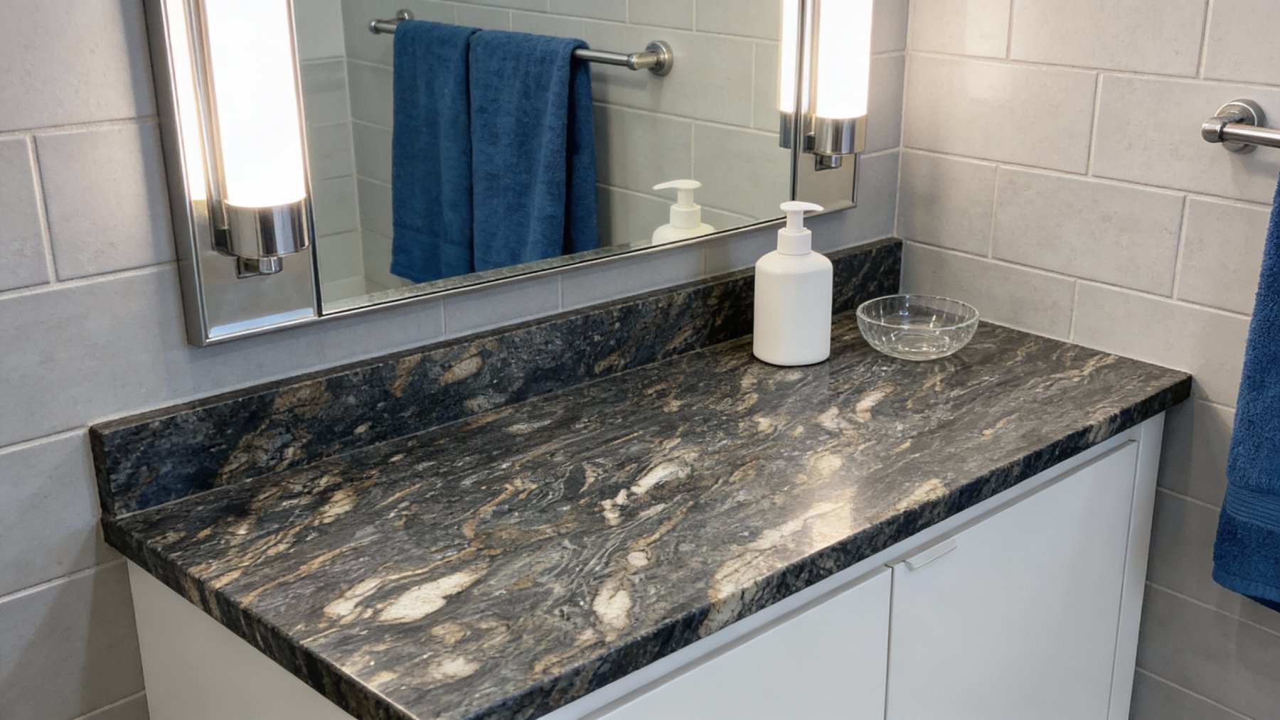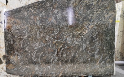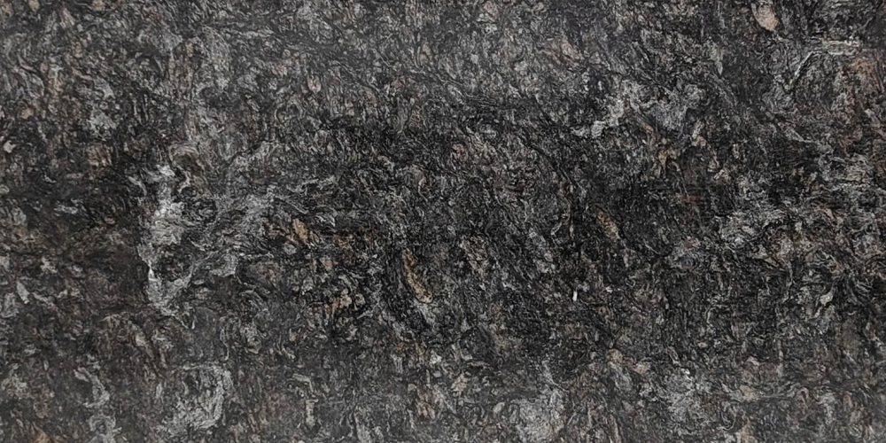 这款石材的底色以**深邃的炭黑色与暗灰色**为主调,整体色调沉稳厚重,如同夜幕下的岩石肌理,自带大气内敛的质感。深色基底为纹理提供了强烈的视觉对比,让后续纹理更显突出,奠定了整体低调而高级的基调。