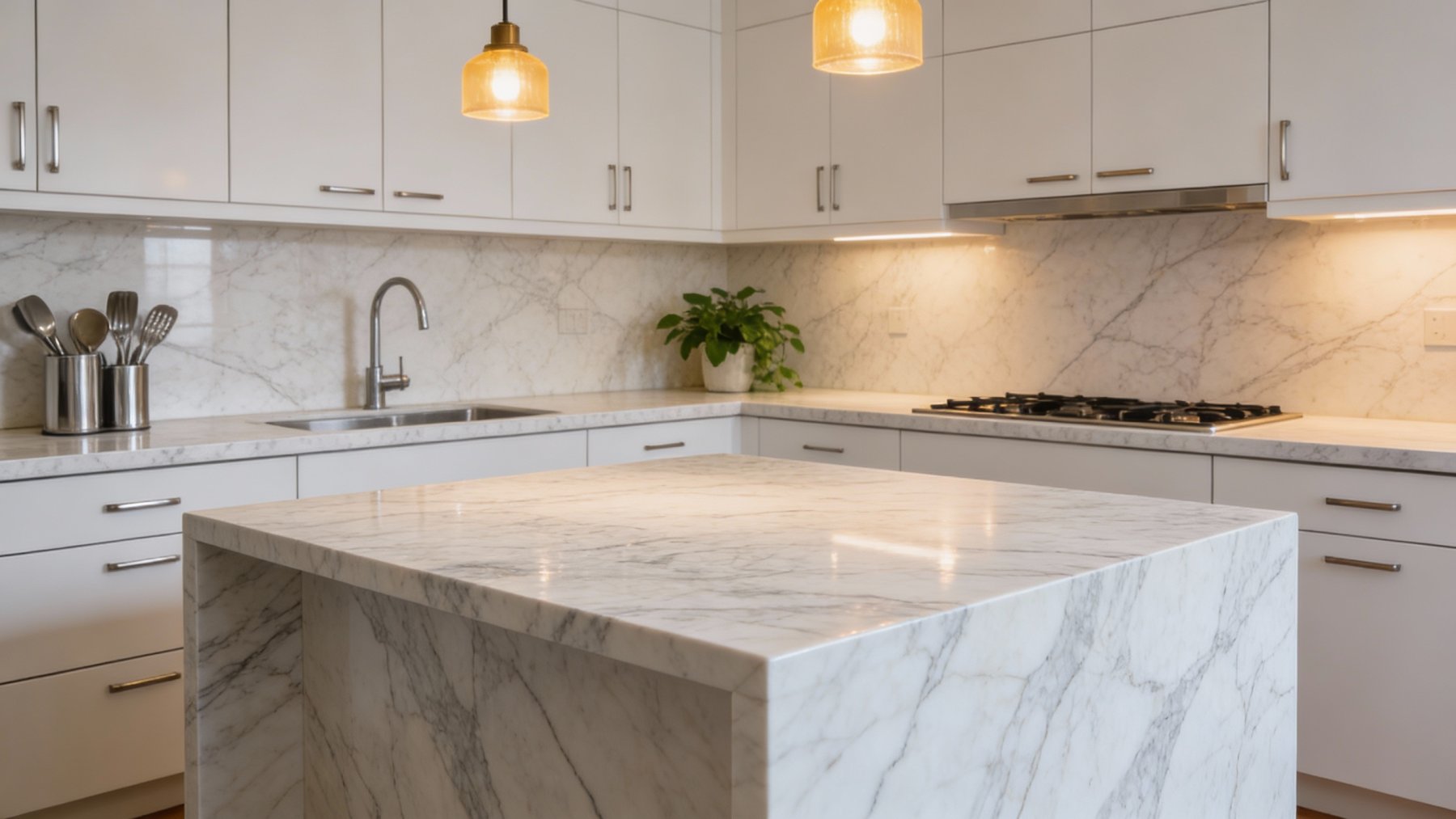 表面经精细打磨后呈现**柔和的柔光质感**,触感应光滑莹润,无粗糙颗粒感;纹理的深浅变化赋予石材立体层次,部分区域纹理稍显浓郁,与浅白底色形成微妙对比,既保留了天然石材的肌理温度,又兼具现代设计的精致感,光线照射下能隐约透出温润的通透感,提升空间的细腻度与高级感。