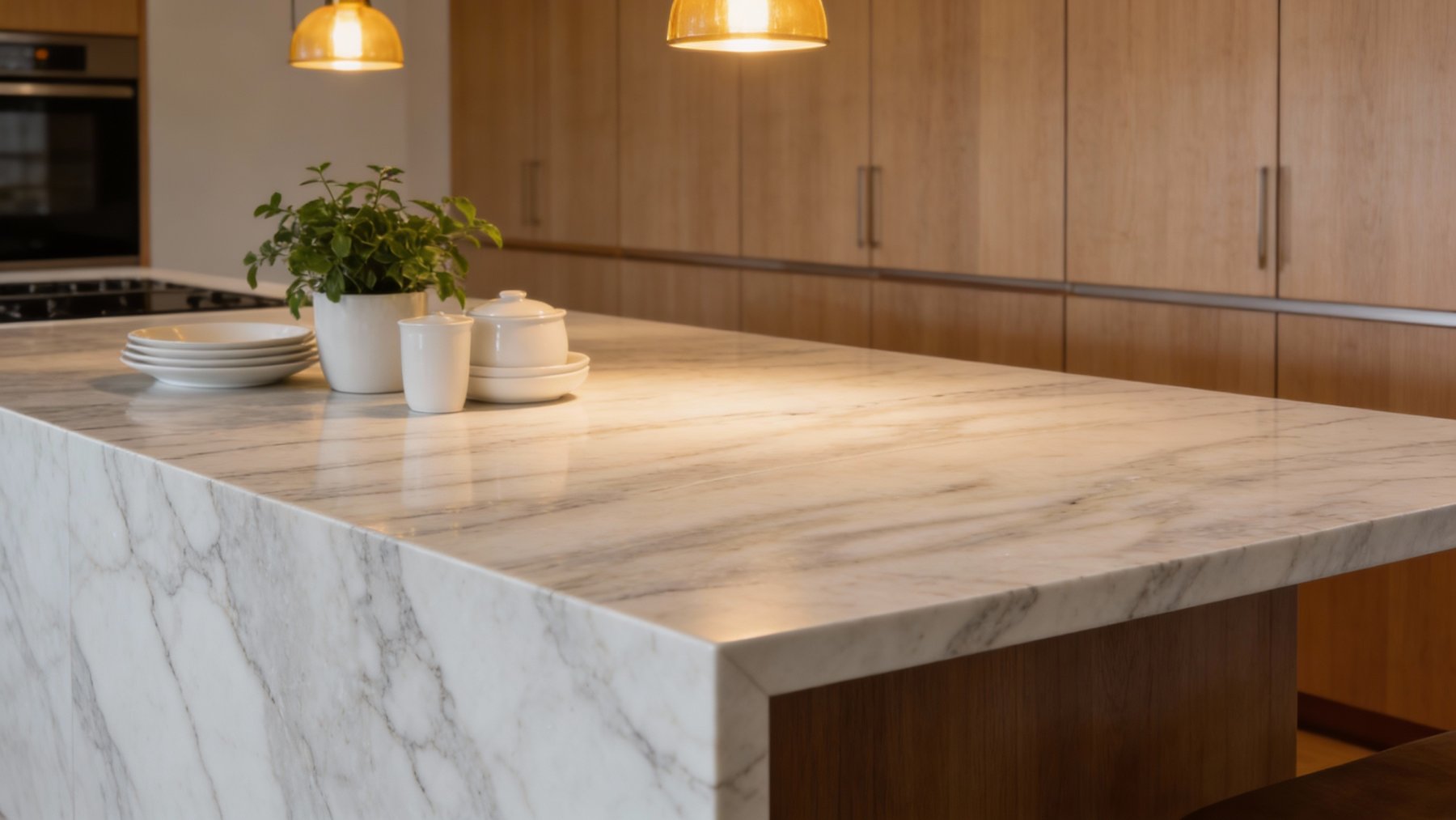 这款石材的底色基调为纯净柔和的象牙白,整体色调明亮通透,带着天然石材特有的温润质感,不似人工白那般生硬刺眼,反而如清晨薄雾般轻盈雅致,给人干净、静谧的视觉感受,为空间奠定清新雅致的基调。
