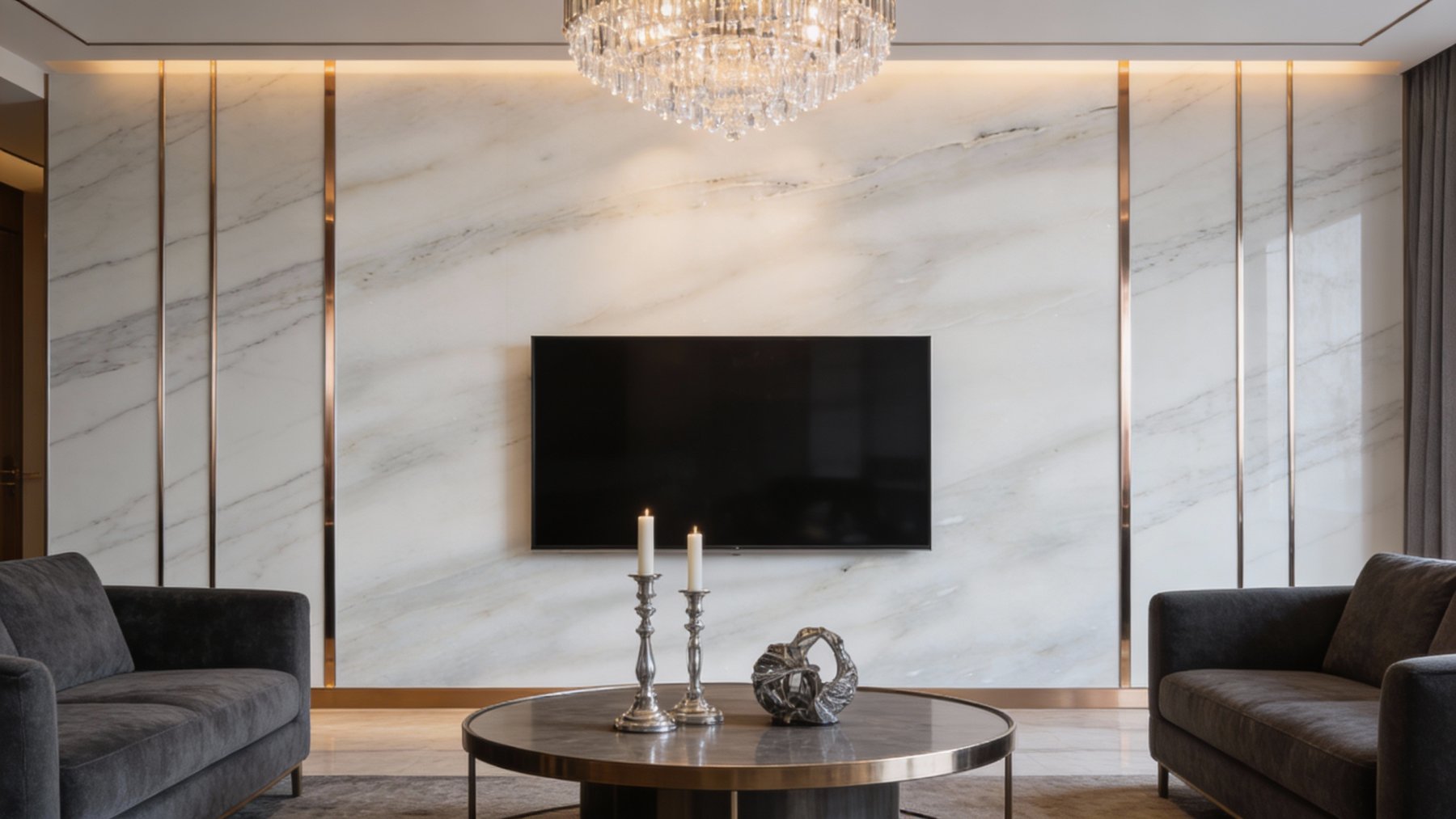 表面质感细腻光滑,泛着天然石材特有的温润光泽,触感应是顺滑微凉、细腻如玉的。纹理边缘过渡自然,无生硬切割痕迹;部分区域可见细微的矿物颗粒点缀,似星辰般隐于纹理间,既保留了石材的天然真实感,又增添了层次细节。整体质感高级而不张扬,精致中透着自然的质朴,尽显石材的原生韵味。