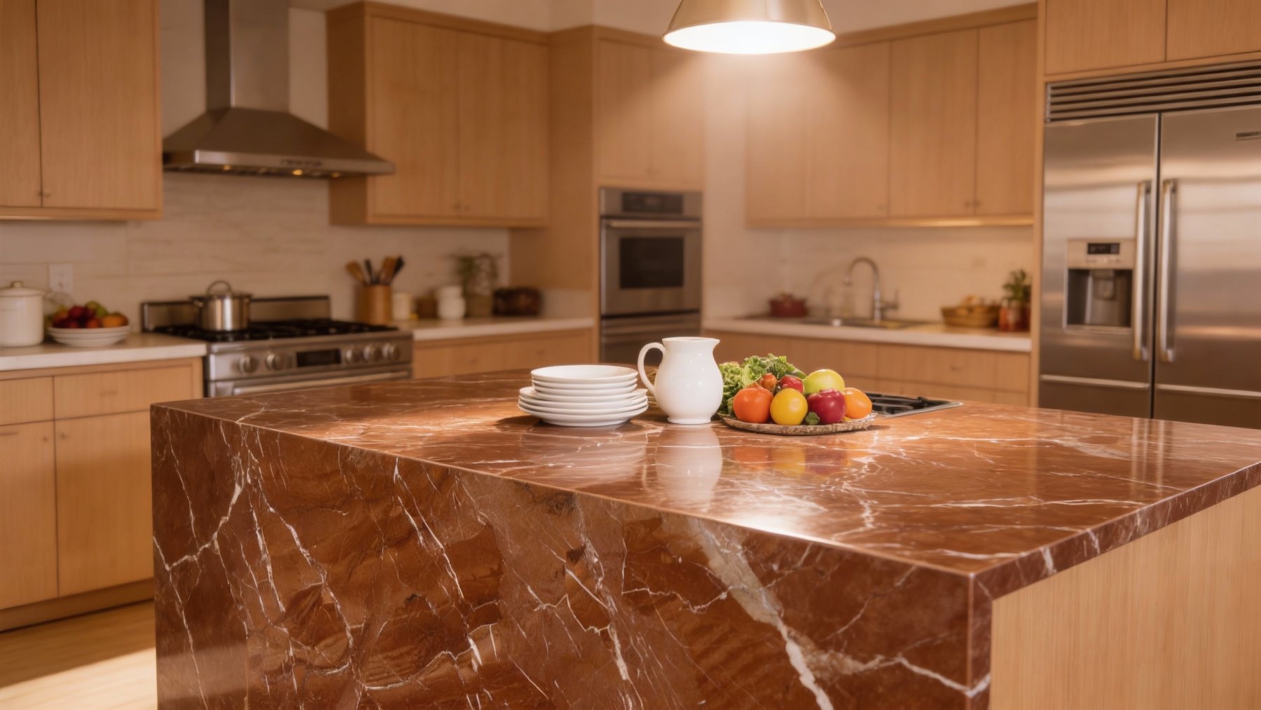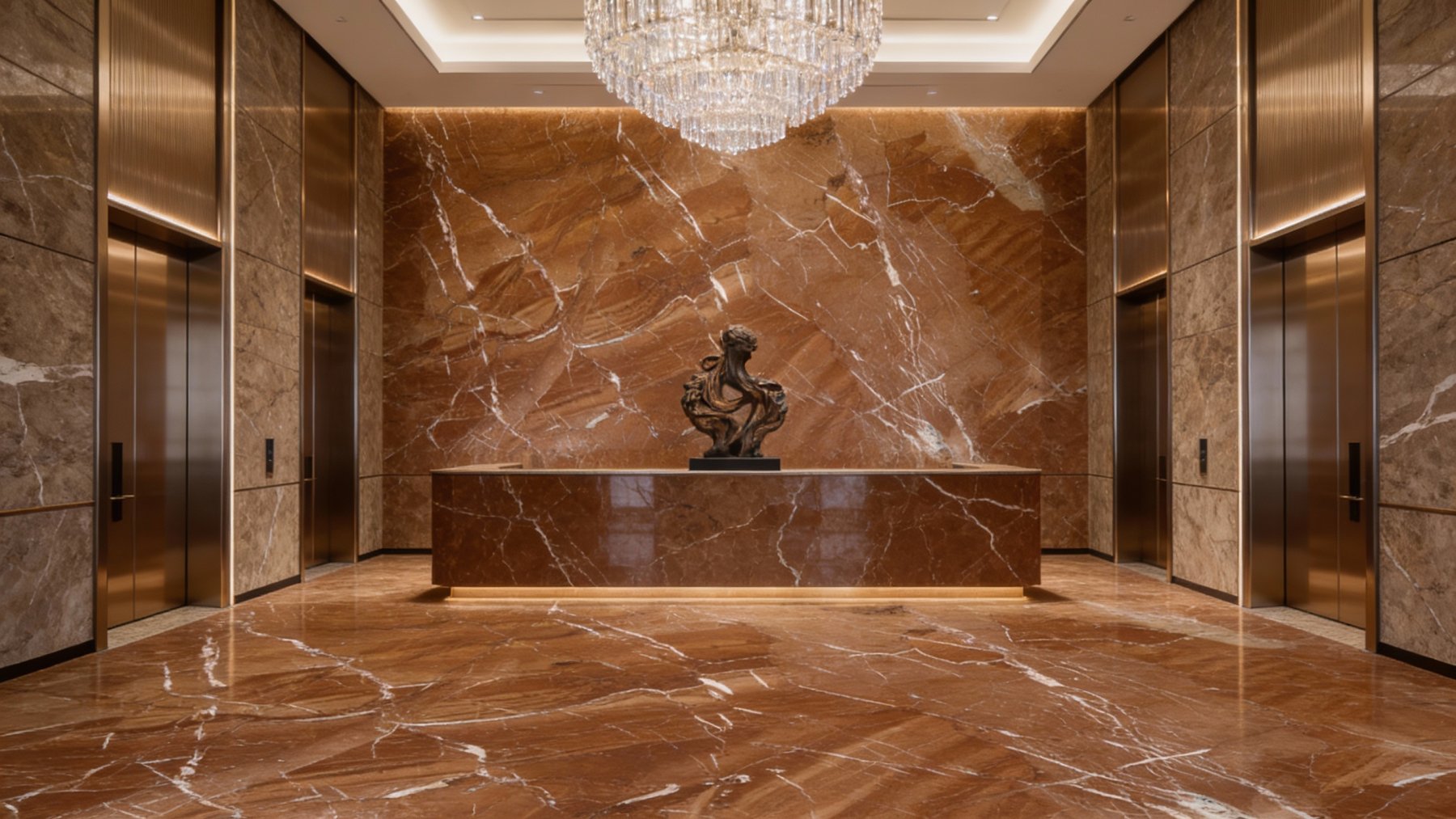 表面**光滑细腻**,泛着**温润内敛的自然光泽**,触感应是平滑厚实,兼具石材特有的温润厚重感;红棕色基底中藏有细微的色泽渐变与斑驳质感,绝非单一色块,尽显天然石材的原生性;白色脉络纹理清晰且与基底融合自然,无突兀割裂感,整体质感平衡了“自然粗犷的原生张力”与“精致细腻的高级感”,每一处细节都彰显着未经雕琢的独特魅力。