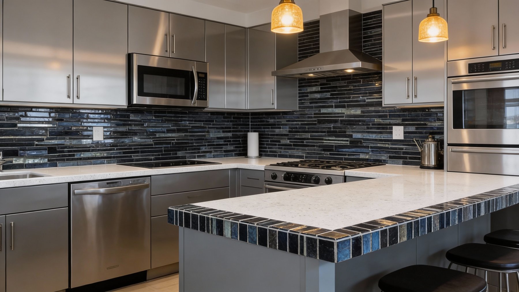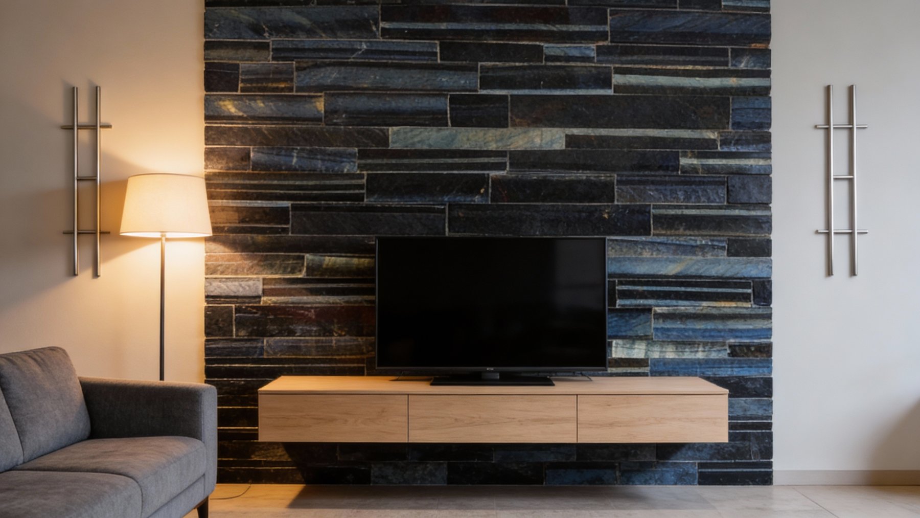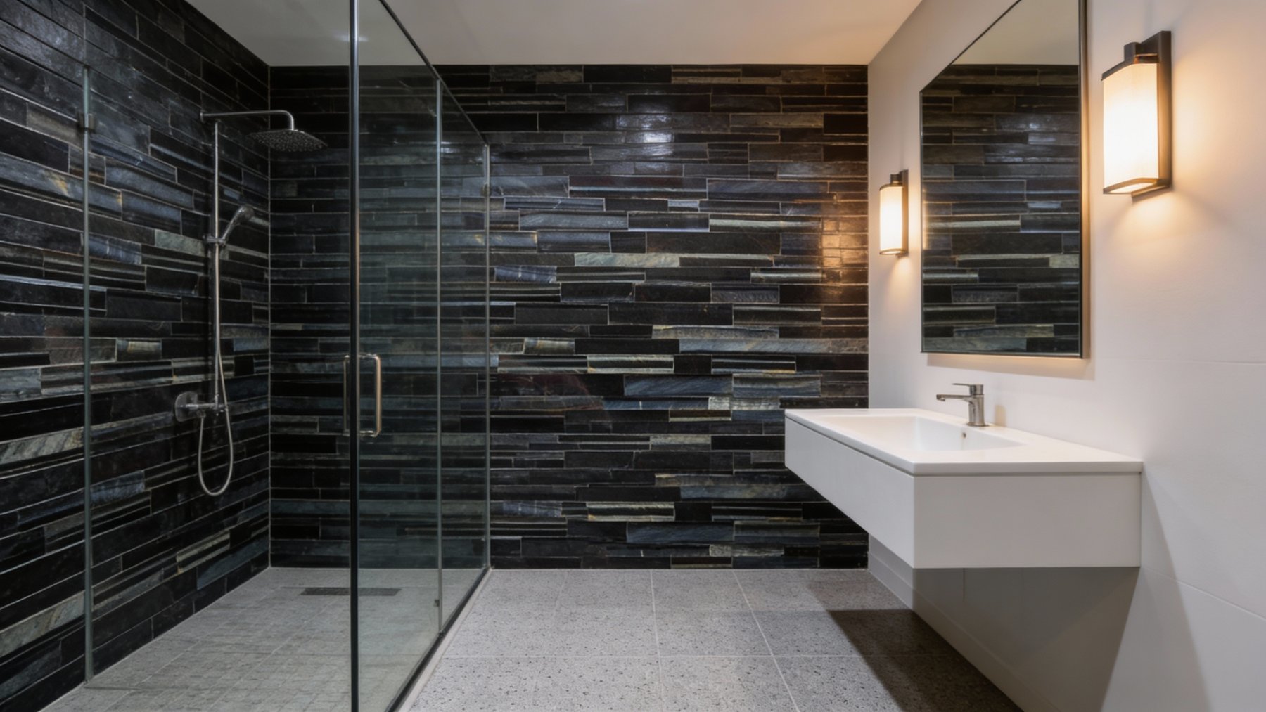 以**浓郁炭黑色**为核心基底,间杂着深浅不一的墨灰与淡蓝调自然晕染,整体色调沉稳深邃,似夜幕下的炭墨池,既保有深色石材的厚重感,又因细微的色泽变化避免了单调,散发着静谧而高级的冷冽气息。