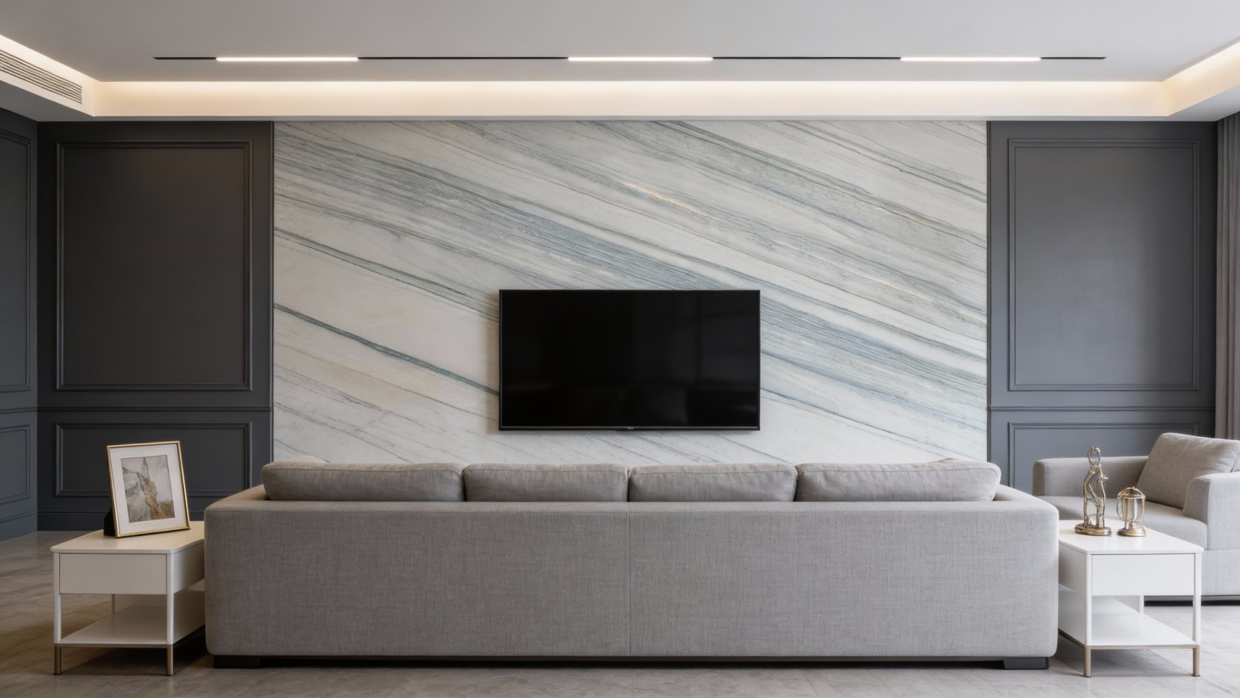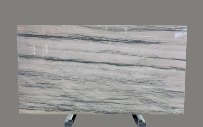 表面经精细抛光处理,触感光滑细腻,带有温润柔和的光泽(非刺眼高光);条纹内部色彩层次丰富,部分区域可见细微的肌理起伏,偶尔点缀极淡的闪光颗粒(如图片中部隐约的浅金质感),让整体质感更显细腻立体,兼具石材的坚实与丝质般的柔滑视觉感受。
