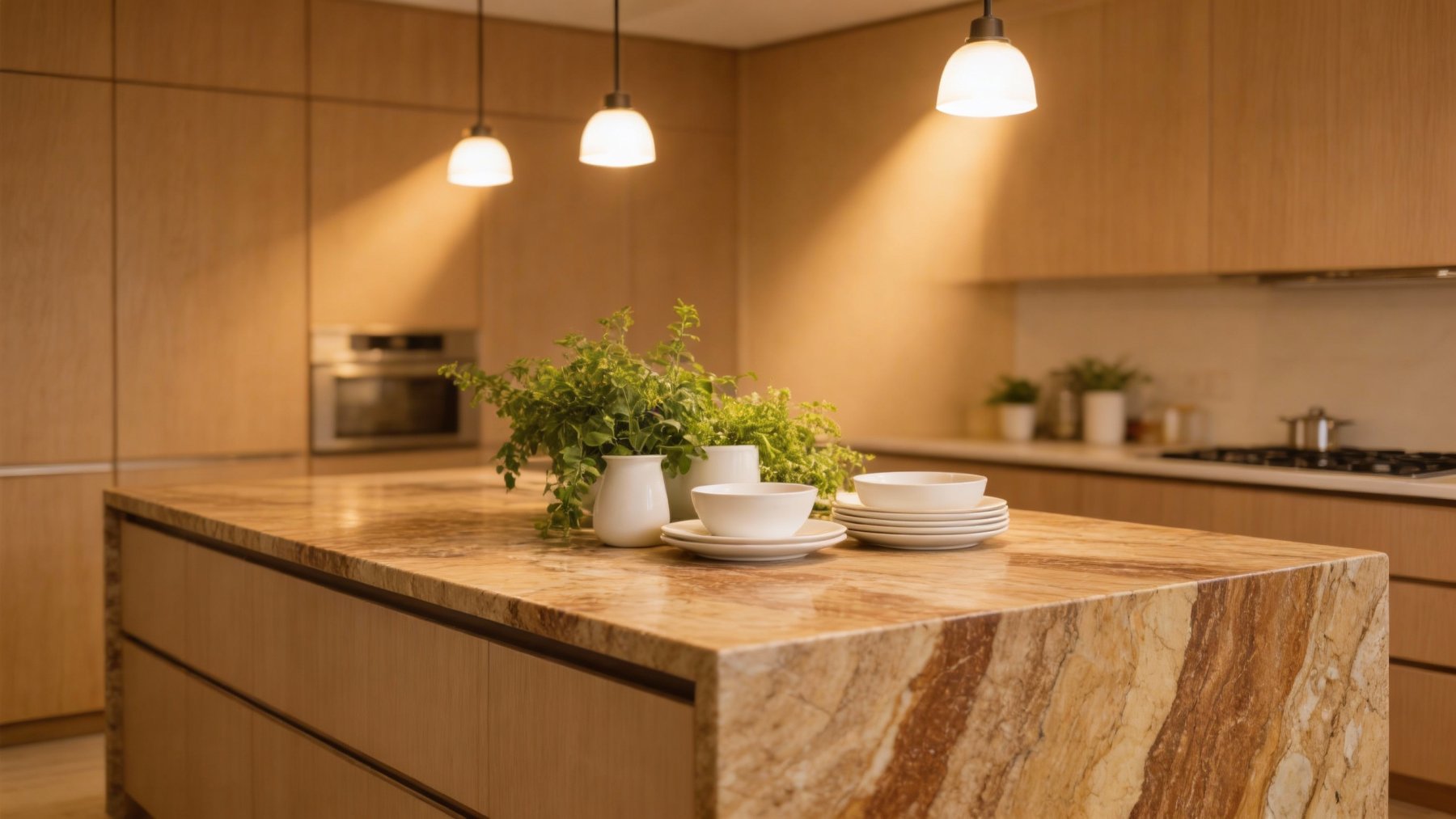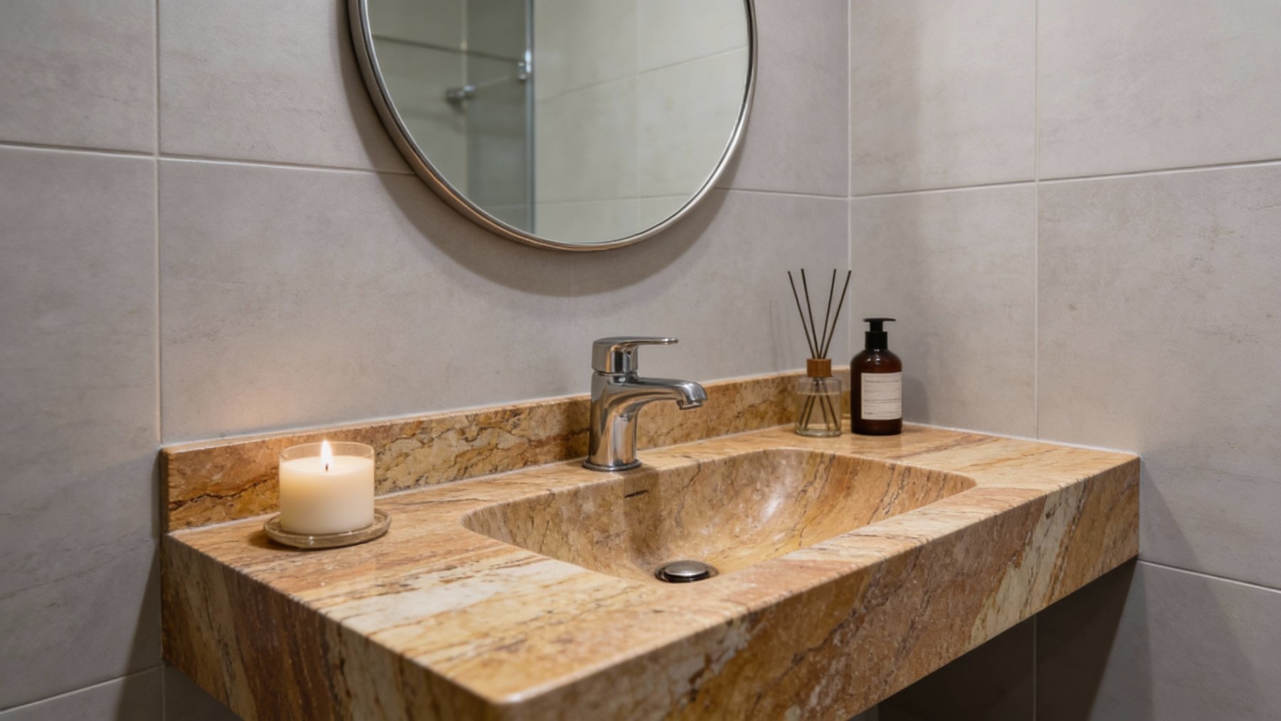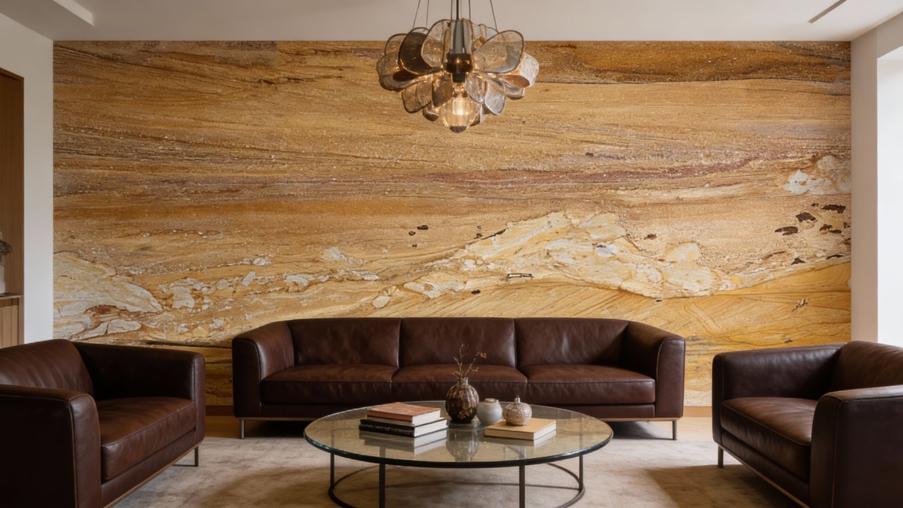 表面带细腻的天然颗粒感,整体呈哑光柔光质感,触感应是温润且略带轻微凹凸的质朴触感;局部结晶区域质感更显细腻,隐约透出淡润的光泽;零星散布的深褐小斑点与细微矿点,为石材增添了丰富的细节层次,整体质感醇厚自然,兼具原始粗犷的天然感与含蓄温润的肌理温度。