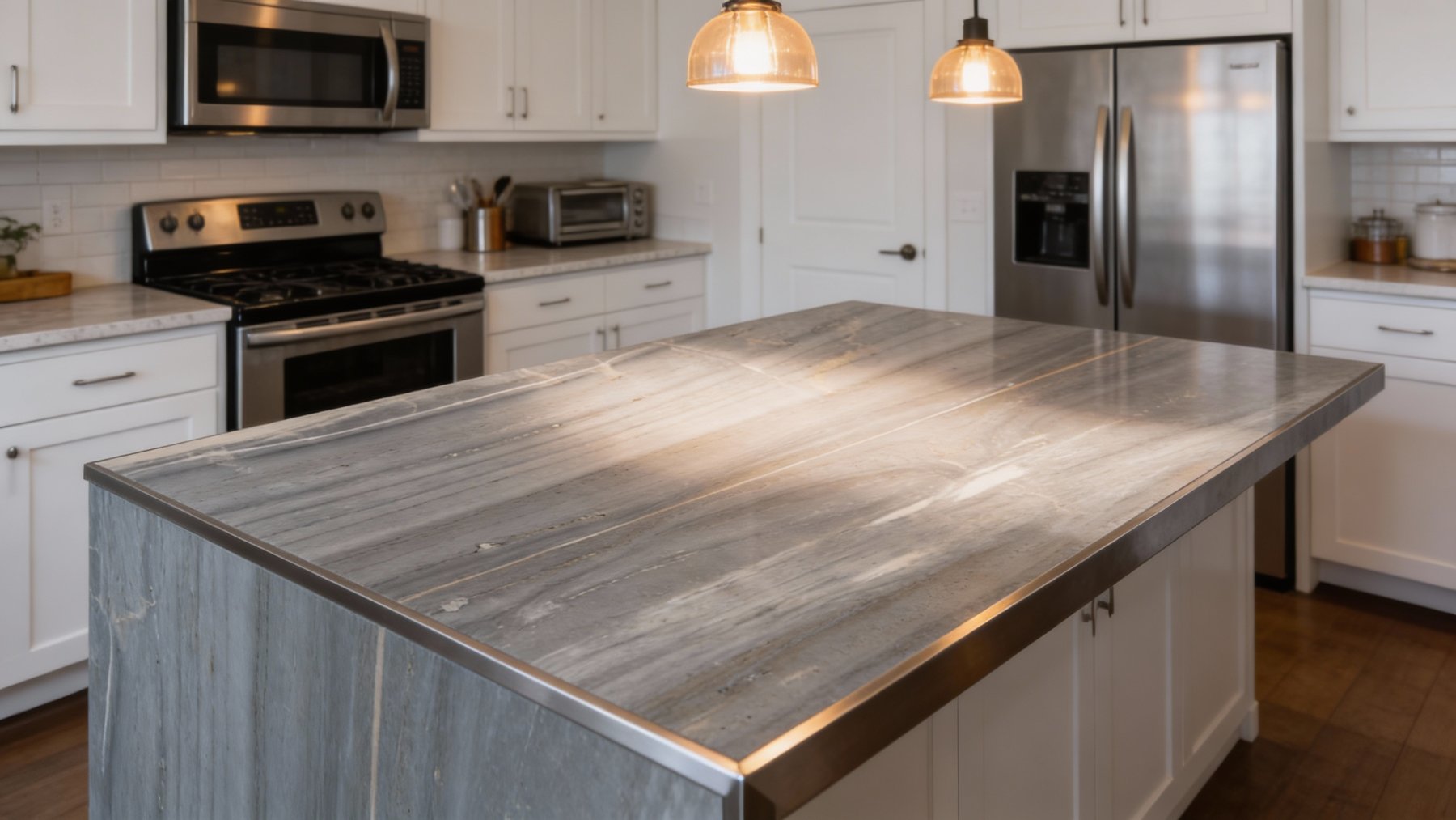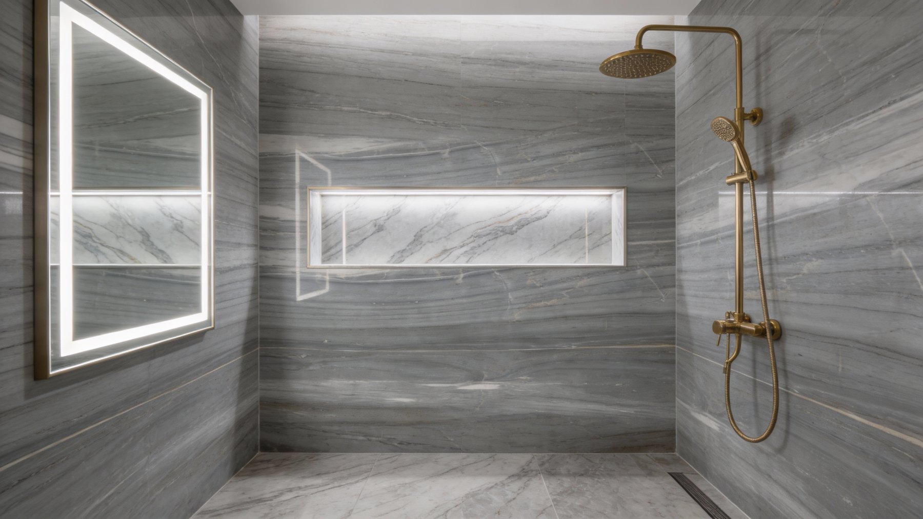 这款石材的底色以**冷调灰色系**为主,层次丰富且过渡自然——从浅灰的清透到中灰的厚重无缝衔接,色调沉稳内敛却不沉闷,为空间奠定了静谧雅致的视觉基底,自带高级感与氛围感。