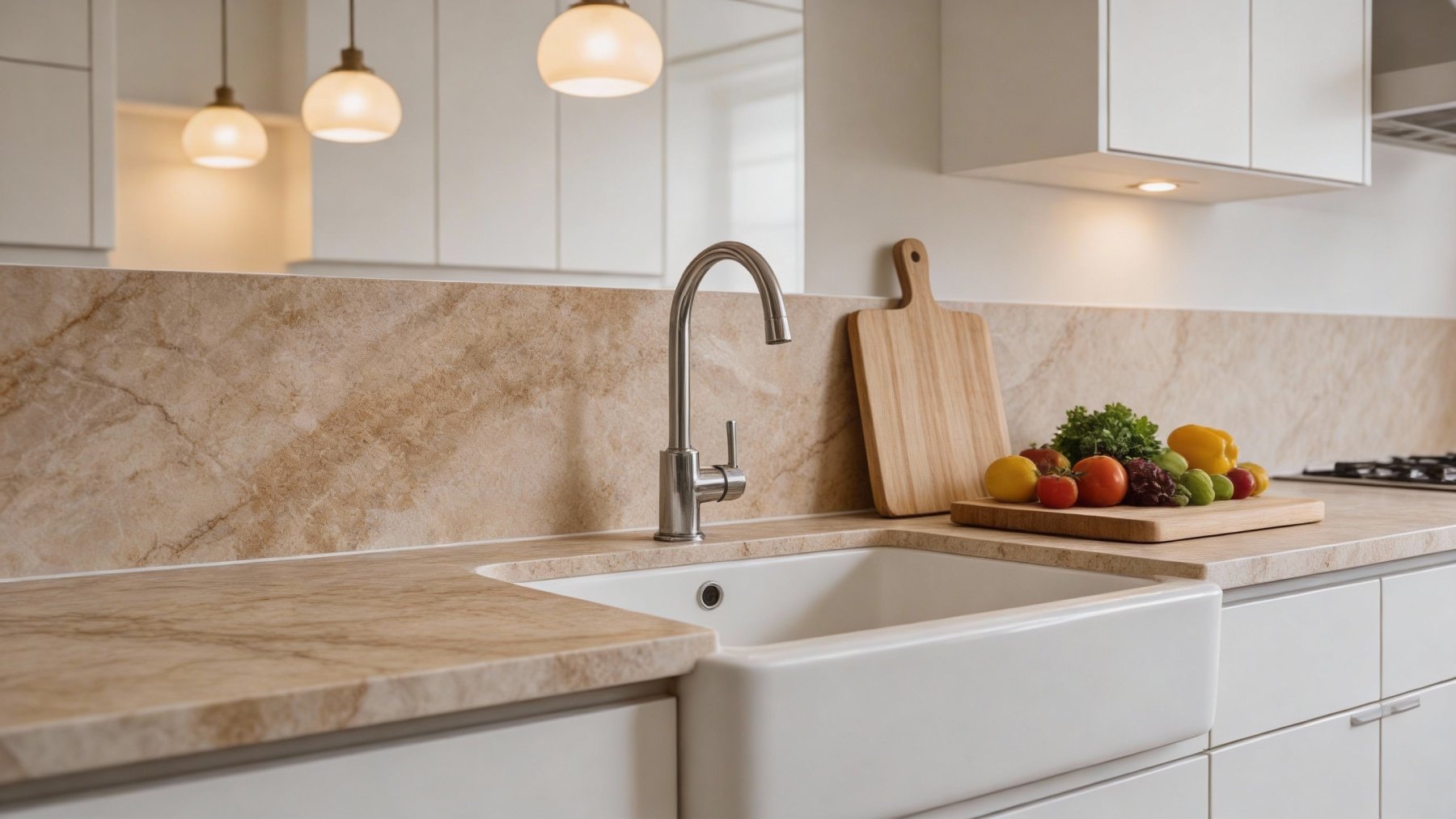 纹理呈自然弥散的云雾状与浅淡脉络交织,无明显边界感——似天然石材经岁月沉淀的肌理,又若水墨在宣纸上晕开的朦胧质感。深浅交错的线条柔和舒展,分布疏密有致:既有局部的浅褐纹理点缀,又有大面积的底色留白,既保留了自然的随性,又不失整体的协调感,无突兀花纹干扰视觉。