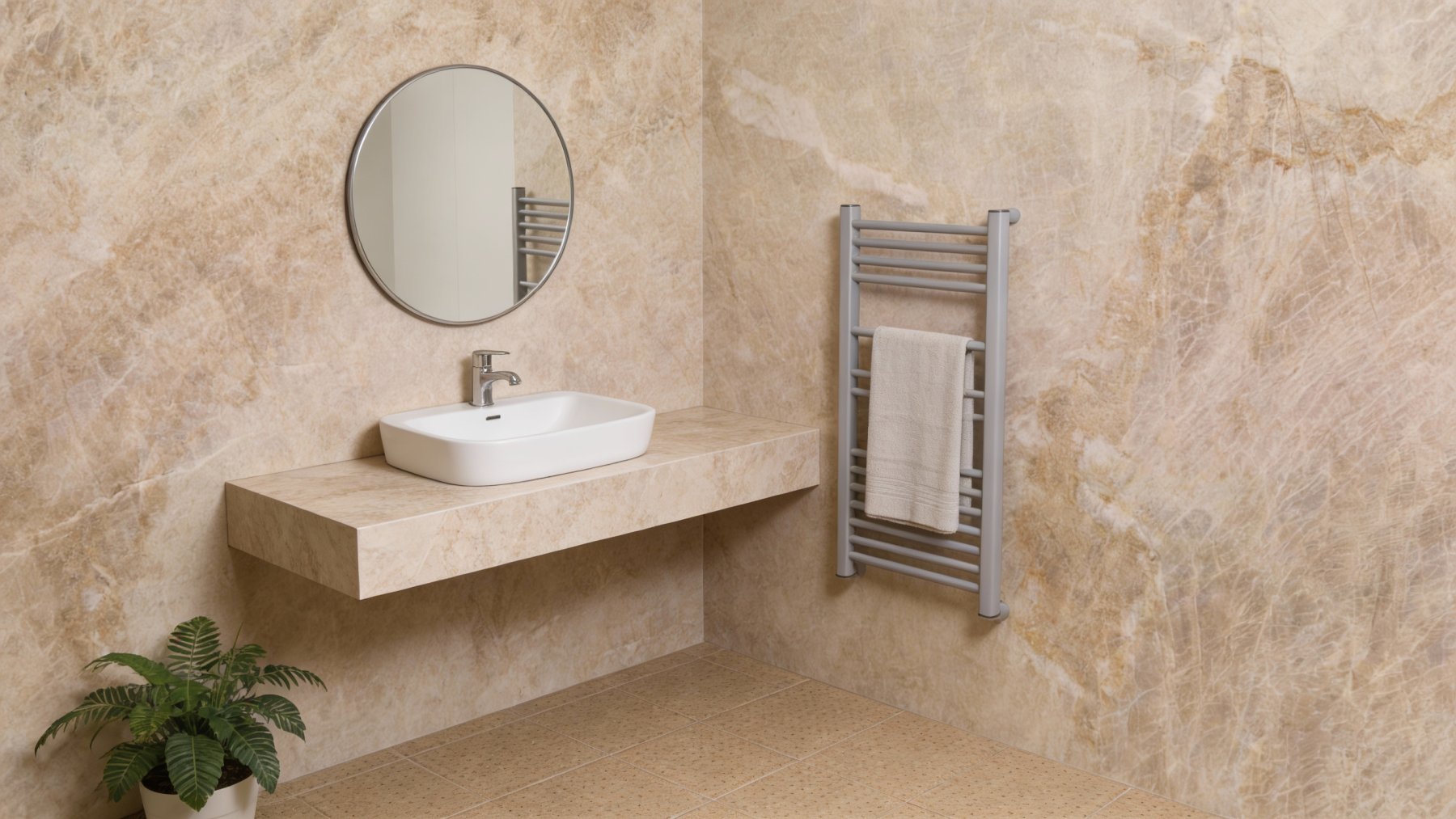 表面呈现细腻的哑光质感,触感应是温润亲肤的。细看可见深浅不一的细微肌理斑点,似天然石材的原生印记,没有过度抛光的冰冷感,反而透着质朴雅致的高级感。整体质感兼具视觉的柔和度与触觉的舒适感,既适合作为墙面、地面的装饰材料,又能与木质、布艺等元素自然融合,提升空间的质感层次。