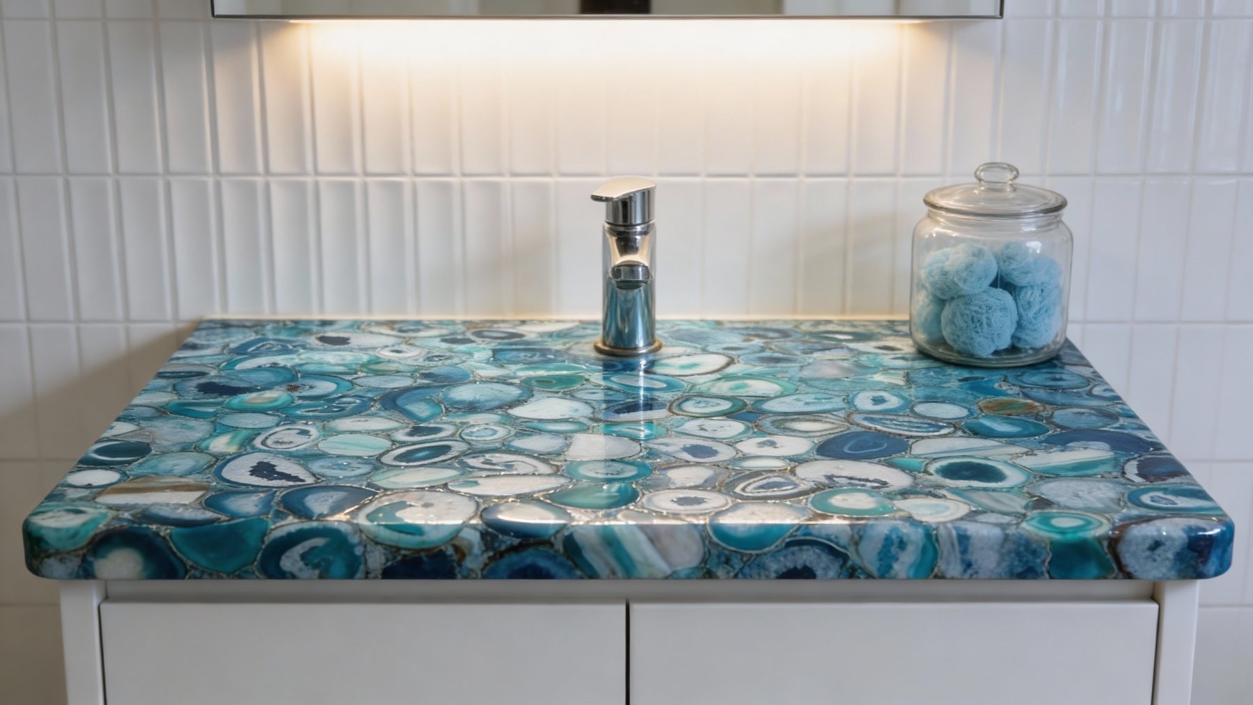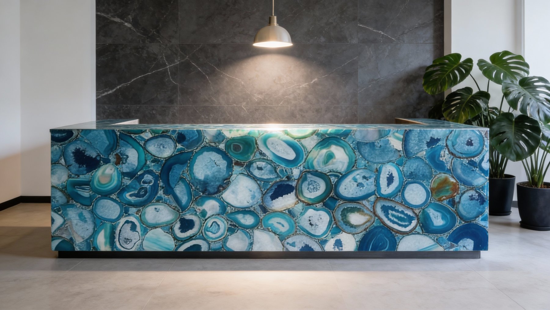 以**深浅错落的蓝色系**为主调,涵盖静谧深蓝、清透浅蓝与柔和钴蓝等层次,间杂纯净的乳白色基底与淡雅灰色过渡,整体呈现出清新灵动的冷色调氛围。蓝色系自带温润通透感,与白灰底色交织,既保留了天然石材的质朴底蕴,又因冷调的雅致感,传递出如冰川融水般的清爽与宁静。