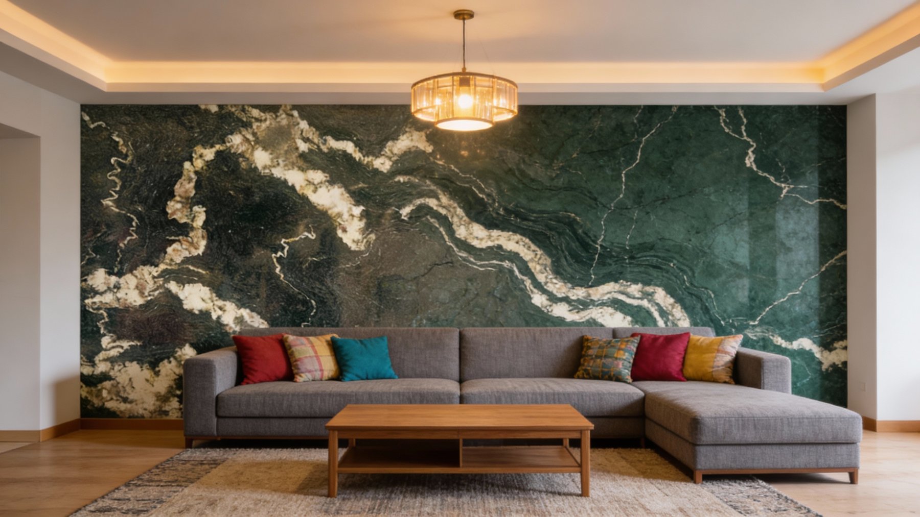 石材表面**细腻温润**,抛光后泛着柔和的光泽——纹理与底色过渡自然,无生硬边界,触摸时平滑细腻,细微处可见纹理的自然起伏。既有石材本身的坚实厚重感,又因纹理的灵动性添了几分柔和;视觉上对比鲜明却不刺眼,触觉上平滑舒适,整体传递出雅致而富有层次的天然质感。