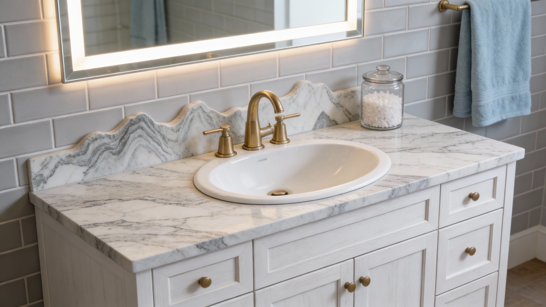 以纯净的浅白色为核心基底,间杂着若隐若现的淡银灰色调,整体基调素雅清透,宛如清晨薄雾笼罩的天际,既保留了石材的干净质感,又因浅灰的融入增添了柔和层次,给人宁静、空灵的视觉初印象。