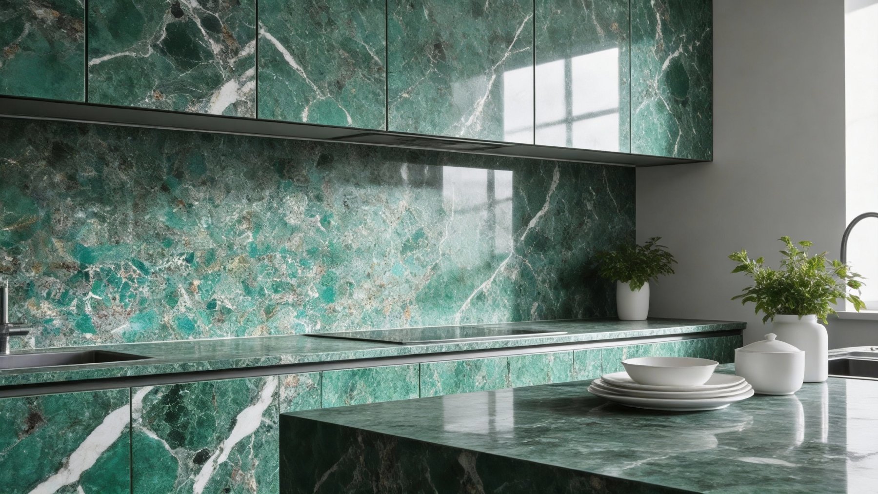 细节处尽显天然石材的精致层次:表面经抛光处理后带有**温润细腻的光泽感**,触摸时平滑细腻;纹理边缘既有自然的晕染过渡(如蓝绿色与浅灰调的柔和衔接),亦有清晰的线条勾勒(如脉络纹理的锐利分割);部分区域可见细微的晶体颗粒反光点,为石材增添了低调的璀璨感。整体质感厚重却不失灵动,兼具天然石材的质朴底蕴与精致的视觉表现力。