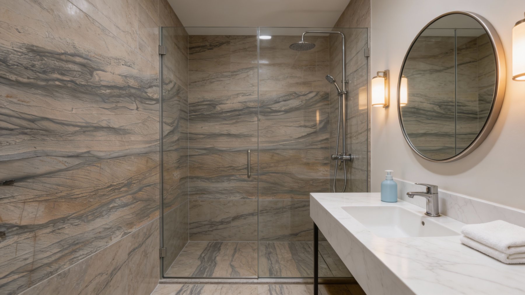石材的底色基调为**柔和的暖棕色系**,以浅棕与米褐为主调,间杂深浅不一的暖调过渡(如浅棕向深棕的自然晕染),整体氛围温暖而不张扬。既避免了冷色调的疏离感,也未陷入深棕的沉闷,奠定了温润雅致的视觉基底,适配多种空间风格的自然调性。