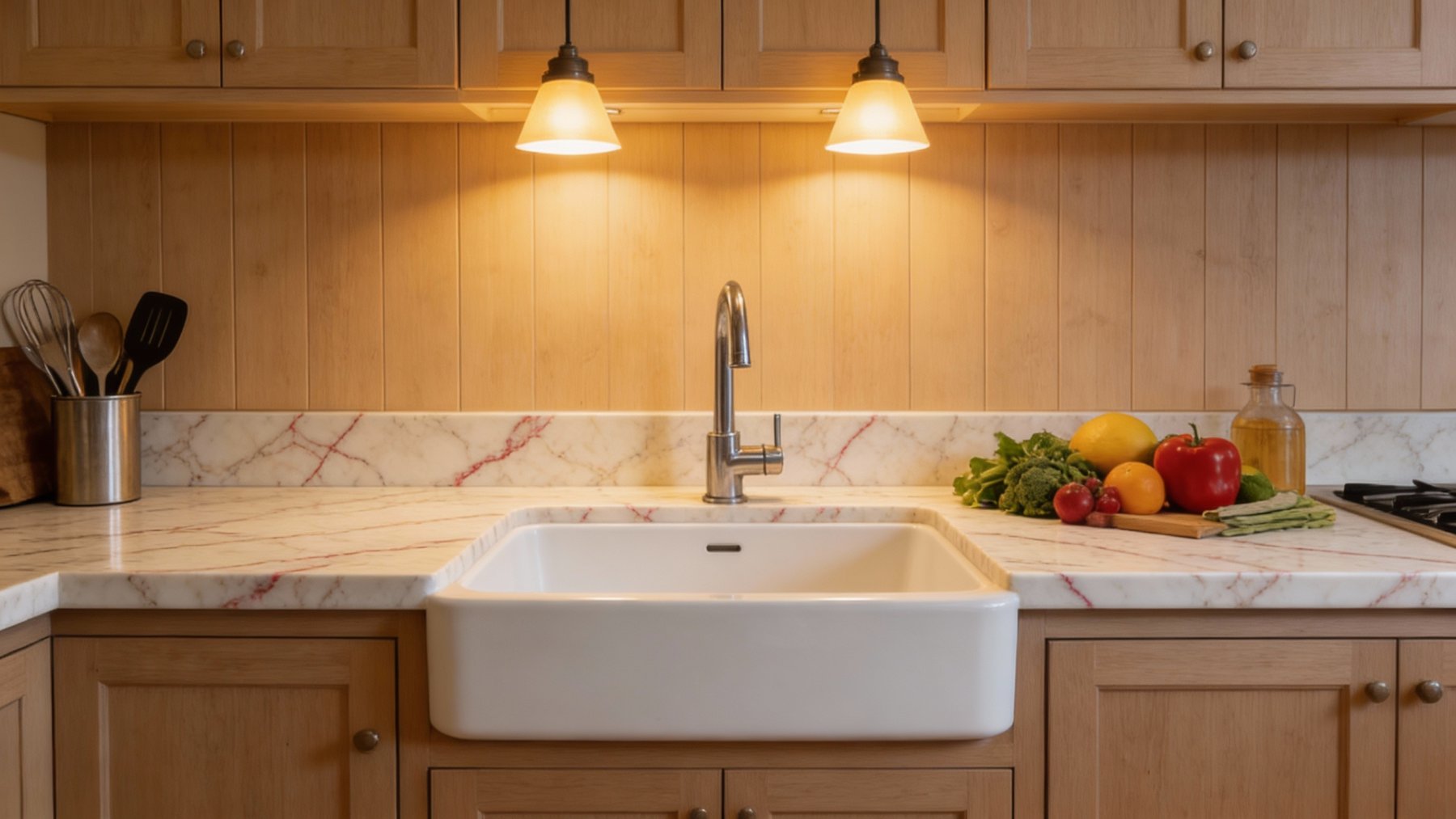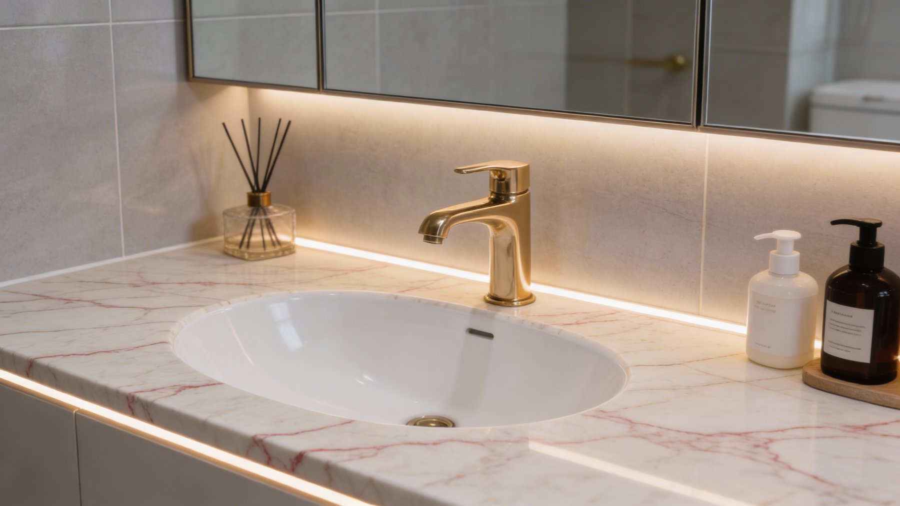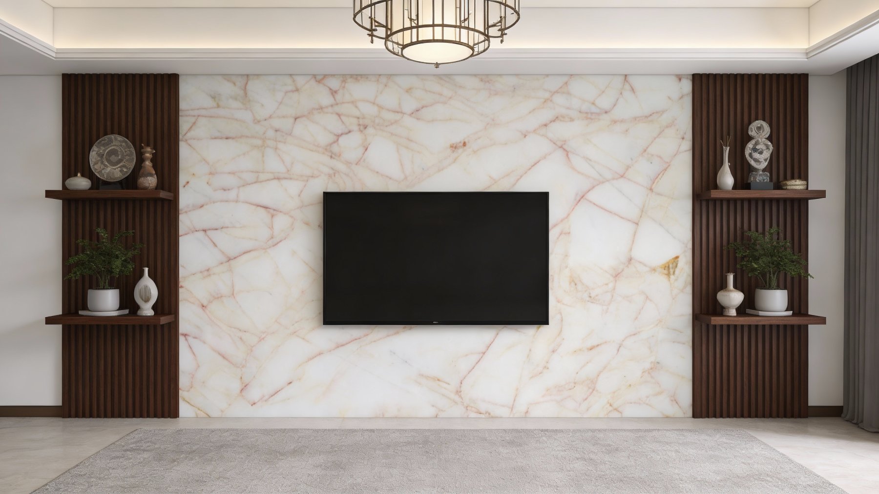 石材表面**光滑细腻**,触感应是温润平滑的,带有天然石材特有的柔和光泽(非高光刺眼,也非哑光沉闷);红粉色纹理嵌入基底内部,与奶白色交融自然,无生硬边界,视觉上质感厚重却不失细腻。整体既保留了天然石材的质朴肌理,又因色调与纹理的雅致感,呈现出静谧高级的格调,仿佛自带一层朦胧的温润滤镜,给人舒适亲和的感官体验。