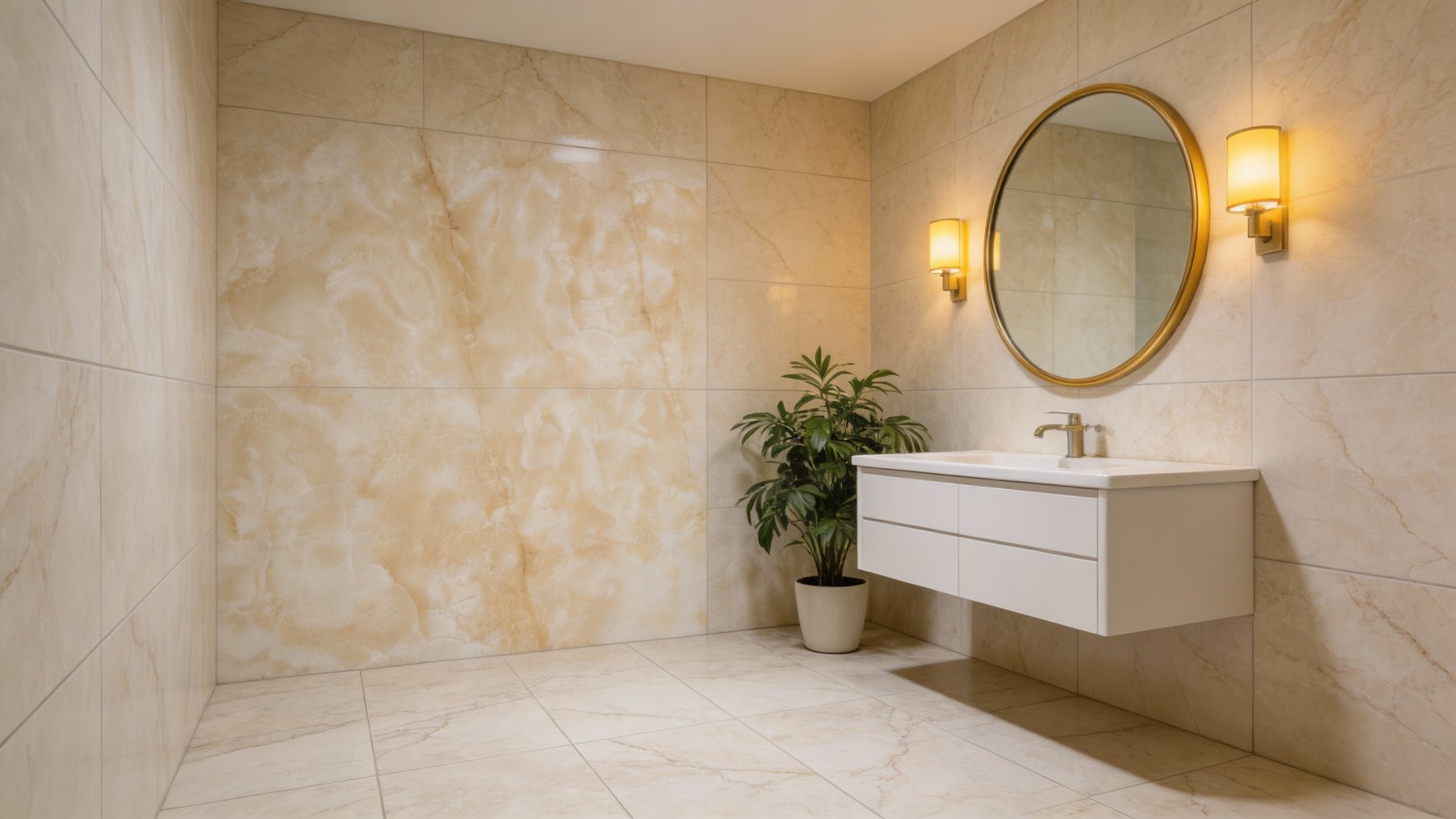 表面**光滑细腻如凝脂**,带着温润内敛的微光(非刺眼高光),触感应是顺滑如玉的质感。纹理细节处过渡自然:每一道脉络都清晰却不突兀,深浅色块的衔接细腻入微,既保留了天然石材的质朴厚重感,又兼具现代材质的精致温润,视觉上雅致柔和,质感高级且耐品。