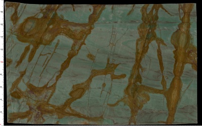纹理呈现**不规则的流动交织状**,深浅不一的棕褐色、赭石色脉络与斑块自然穿插于基底之上: