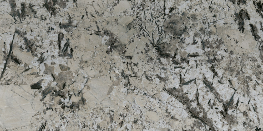 纹理呈现**自然随性的交织状态**,以深灰至近黑色的元素构成核心视觉层次:既有纤细如丝的不规则脉络(似矿物结晶的天然痕迹),又有大小不一的斑驳块状斑块,两者无明显规律却和谐共生——细脉串联起散落的斑块,斑块又平衡了细脉的零散感,整体像大地肌理般充满原始韵律,既避免了单调,又不会因繁复而杂乱,自带“乱中有序”的高级感。