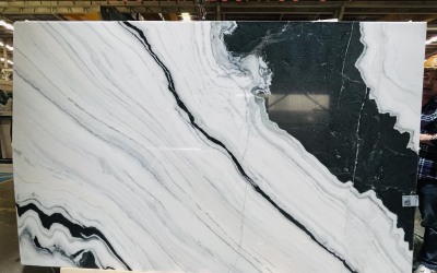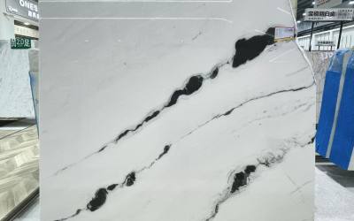 - 白色基底中嵌有细微的天然晶体颗粒,光线下隐约闪烁,赋予石材内敛的璀璨感;