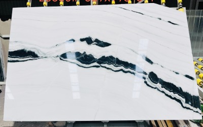 底色以**纯净透亮的白色为主基调**,白度柔和温润,似凝脂般细腻匀净,而非刺眼的冷白。局部裹挟极淡的灰色隐纹,使基底并非单一平面,而是富有细微层次的自然白——如同清晨薄雾笼罩的初雪,既保持了干净雅致的视觉感受,又因隐纹的存在增添了原生石材的呼吸感,避免了单调感。