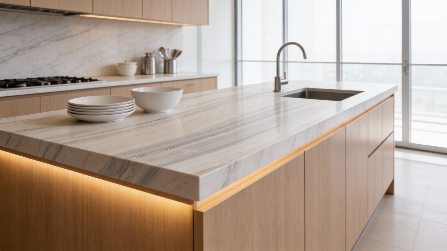 表面质感**细腻温润**,偏向哑光/半哑光的低调触感,无强烈反光,尽显轻奢质感。近距离观察,纹理细节处色彩晕染自然,线条柔和舒展,无明显的颗粒感或粗糙纹理;触感应是平滑细腻的,仿佛经过精心打磨的天然石材,自带一种“摸得到的温润”,高级却不疏离,给人亲和的质感体验。