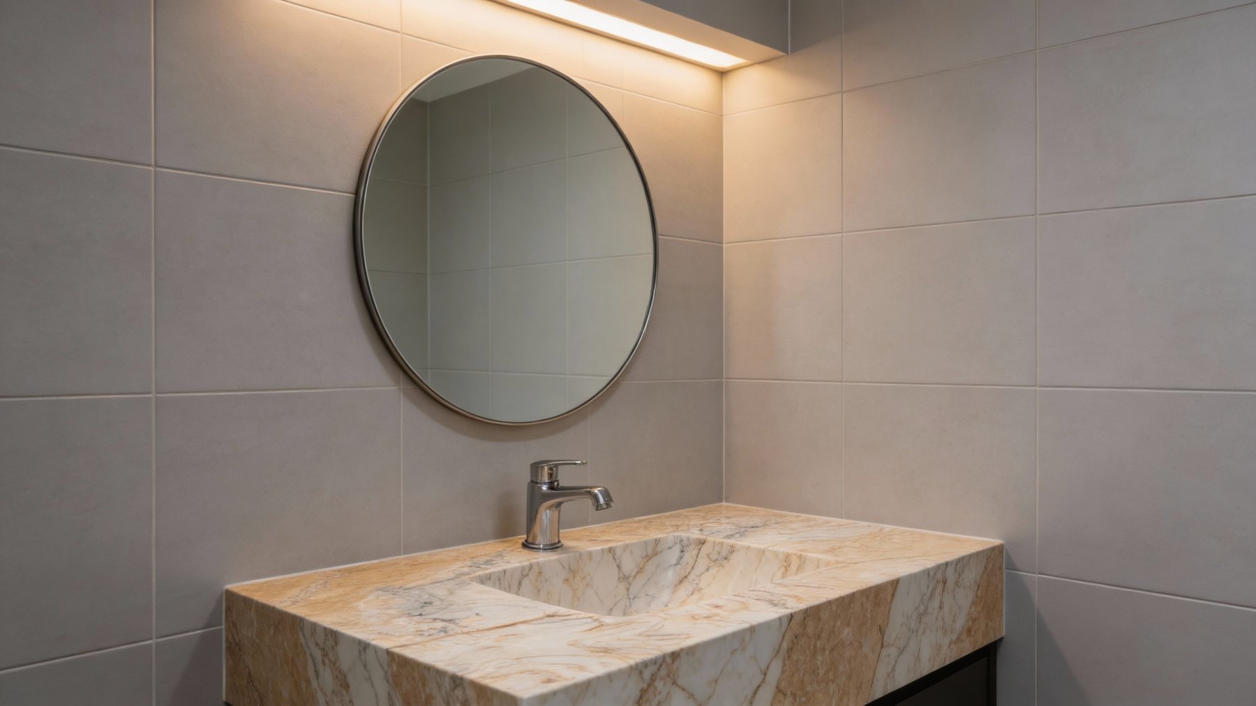 这款石材的底色基调以**温润暖调**为主,融合浅米白、淡暖黄与浅灰的自然过渡色,整体呈现出柔和雅致的视觉氛围。暖调底色弱化了石材的冷硬感,既保留了天然材质的质朴,又传递出舒适亲和的温度感,适配多种空间风格的调性。
