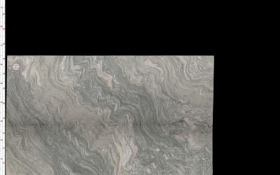 纹理呈自然流动的蜿蜒脉络状,深浅灰色线条交织缠绕,粗细则疏密有致:宽幅的浅灰纹理带与细密的深灰线条相互映衬,如云雾舒展、溪流蜿蜒,层次丰富且富有动态韵律,无刻意雕琢的规整感,尽显天然石材的随性之美。