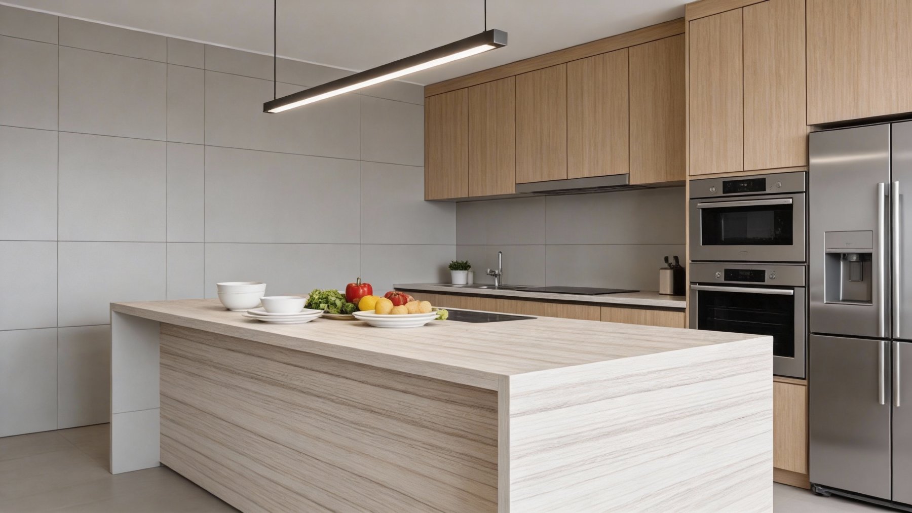 表面经精细处理后,呈现**细腻光滑的温润质感**,触感应是顺滑莹润,带有柔和的光泽感(非刺眼高光)。细节处可见纹理中夹杂着极细微的天然肌理变化——部分条纹边缘有若隐若现的渐变晕染,而非机械刻板的直线,赋予石材自然生动的呼吸感。整体质感兼具精致感与质朴感,既适合现代简约空间,也能融入雅致轻奢风格。