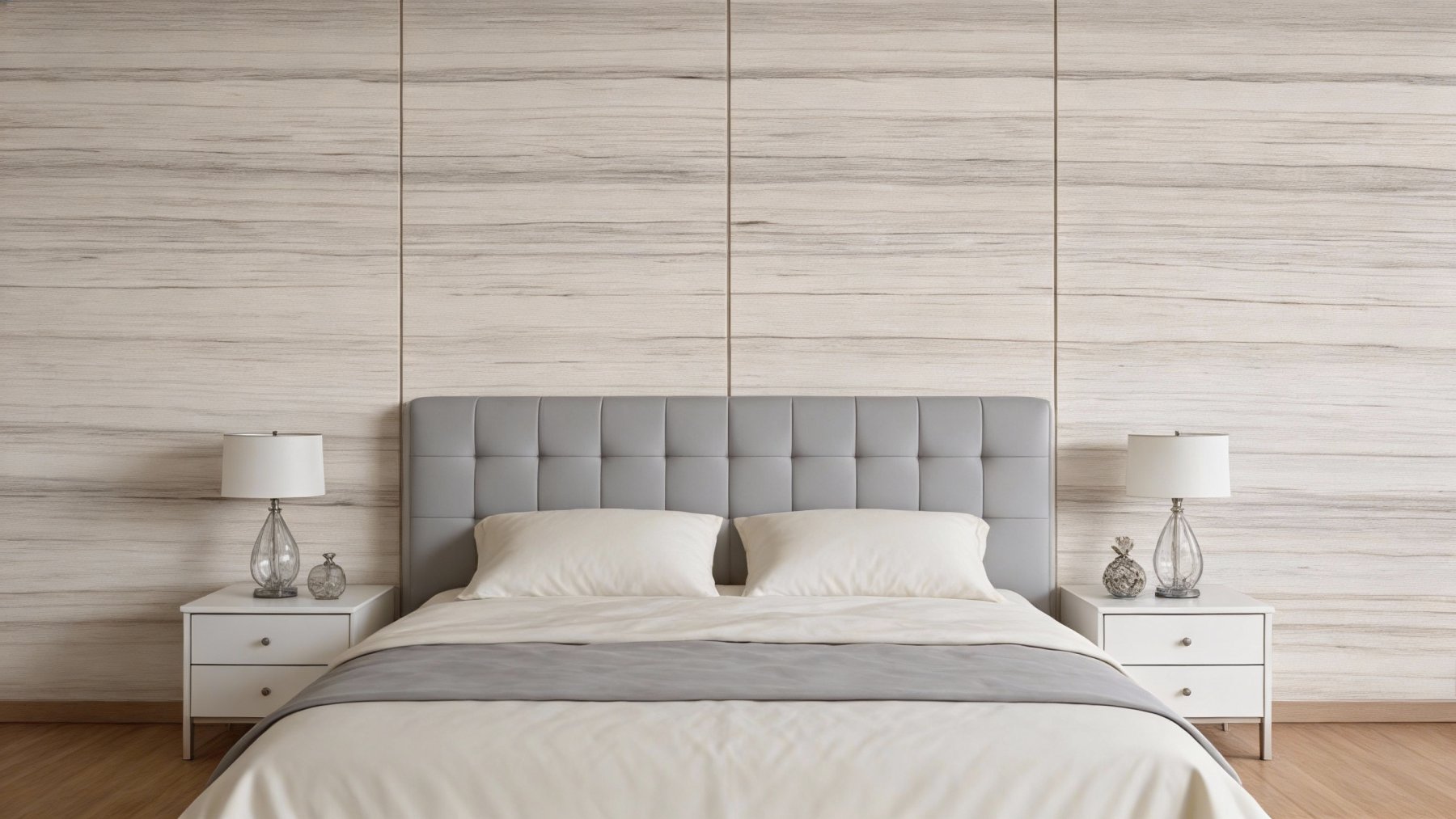 纹理呈现**细腻横向平行条纹**形态,线条宽窄错落但分布均匀,深浅过渡自然有序。深灰色的纤细纹路与浅米白底色交织,如同层叠的薄纱或舒缓的水流波纹,形成流畅舒展的视觉动线。纹理无断裂或突兀感,整体韵律感十足,既不繁杂也不单调,传递出静谧而富有层次的动态美。