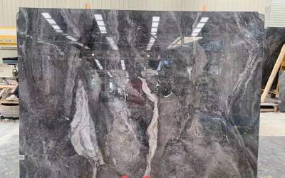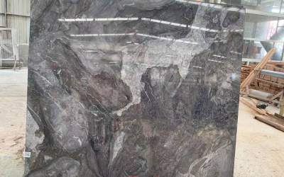 纹理呈现**自然流动的脉络状与斑驳色块交织**的形态:线条或粗或细,时而舒展如流云,时而交错似山峦肌理,无刻意规律却充满天然韵律感。局部纹理密集且层次丰富,与稀疏处形成鲜明对比,仿佛时光雕琢的天然痕迹,既保留了石材的原始张力,又通过柔和过渡传递出灵动的动态感。