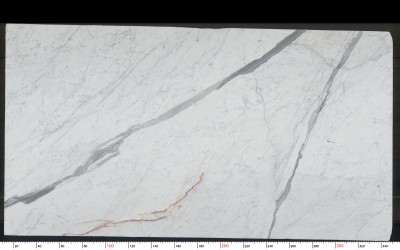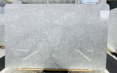 纹理呈现**自然流动的脉络状**,以浅灰色为主调,线条纤细且富有变化:时而舒展如轻云漫卷,时而交错似流水蜿蜒,似山间溪流般灵动飘逸,又似云絮般轻盈柔和。纹理分布疏密有致,无杂乱堆砌感,赋予石材动态的韵律感与自然的生命力。